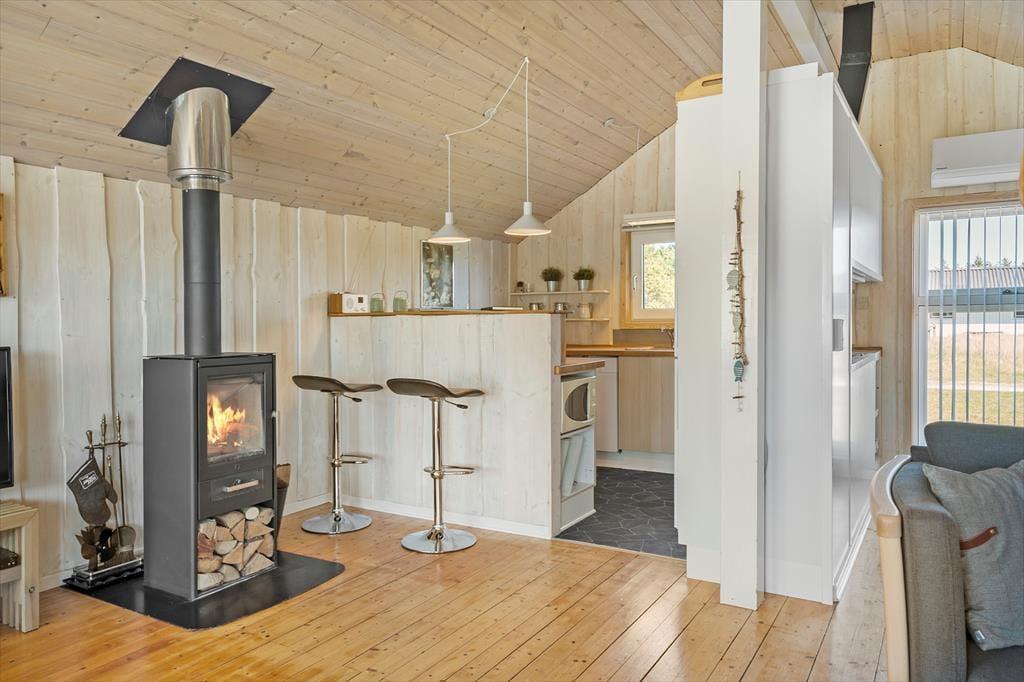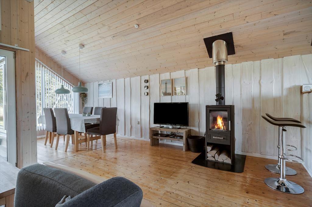 Das 109 m² umfassende Urlaubsdomizil bietet eine gute Raumaufteilung für fünf Urlauber. Sie betreten das Haus durch den großen, sehr guten Eingangsbereich. Mit einem Wäscheturm, einem Dachflächenfenster und schönen dagegenständen lässt bereits der Eingangsbereich erkennen, wie einladend, praktisch und schön sich das gesamte Haus präsentiert. Die drei Schlafzimmer beinhalten allesamt komfortable Betten und Garderobenschränke. In Verlängerung des hellen Duschbadezimmers lädt die Sauna zu erholsamen Momenten ein, insbesondere nach einem langen Urlaubstag. Schön und stimmungsvoll geht es im Wohnraum zu, in dem Ihnen weiche Polstersitzmöbel, ein Esstisch, ein Kaminofen und ein Flachbild-TV mit Parabolempfang, einem DVD-Player und Chromecast zur Verfügung stehen. Die gut ausgestattete Küche ist offen mit dem Wohnraum verbunden. Die großen Fensterpartien gewähren nicht nur einen schönen Tageslichteinfall, sondern verwöhnen zusätzlich mit einem direkten Ausgang auf die Terrasse.