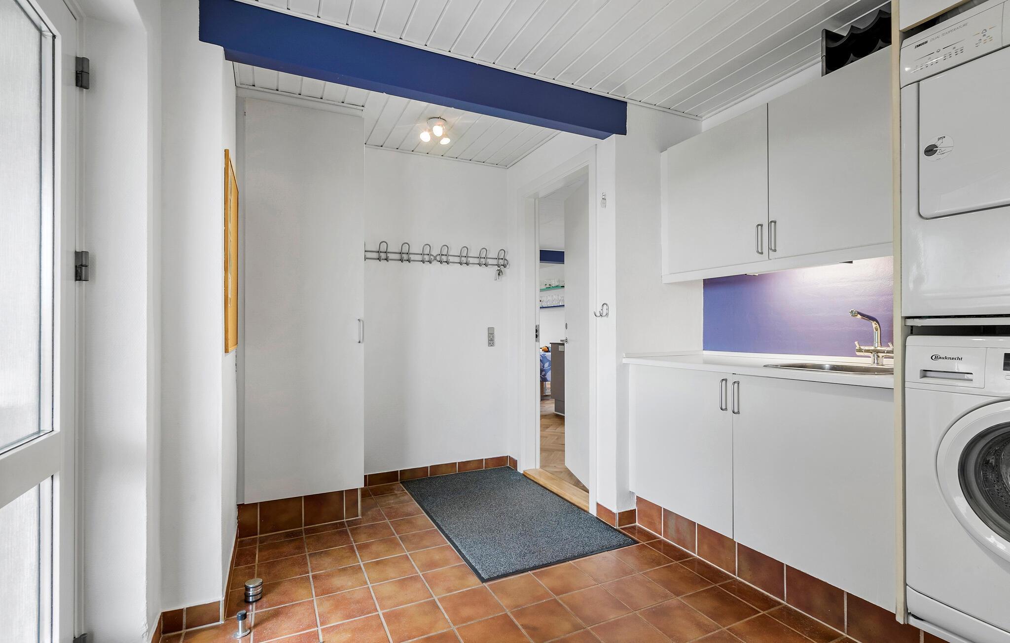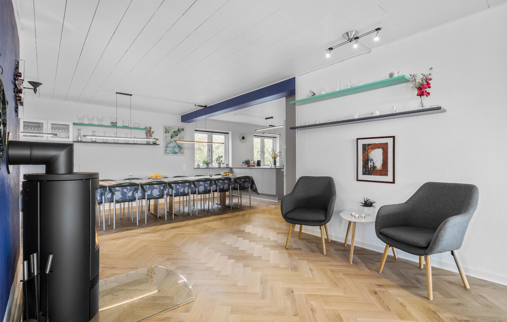 In naturschöner Gegend zwischen Hvide Sande und Søndervig liegt dieses besonders attraktive Luxushaus auf einem hügeligen Dünengrund. Mit seinen 400 m² eignet es sich perfekt für mehrere Familien. Es verfügt über u. a. eine große Poolabteilung, wo es, außer dem Pool, einen Whirlpool für vier Personen und eine Rutsche gibt. Ferner finden Sie auch eine Sauna. In wenigen Worten haben Sie hier alle Einrichtungen für einen schönen Urlaub, auch wenn das Wetter nicht so gut ist! Vom TV-Raum im ersten Stock gibt es den Ausgang zu einer Terrasse mit Fördeblick, und zum Haus gehört auch eine andere, geschlossene Terrasse mit guten Essplätzen. Ihre Fahrräder können Sie im Geräteraum unterstellen.
