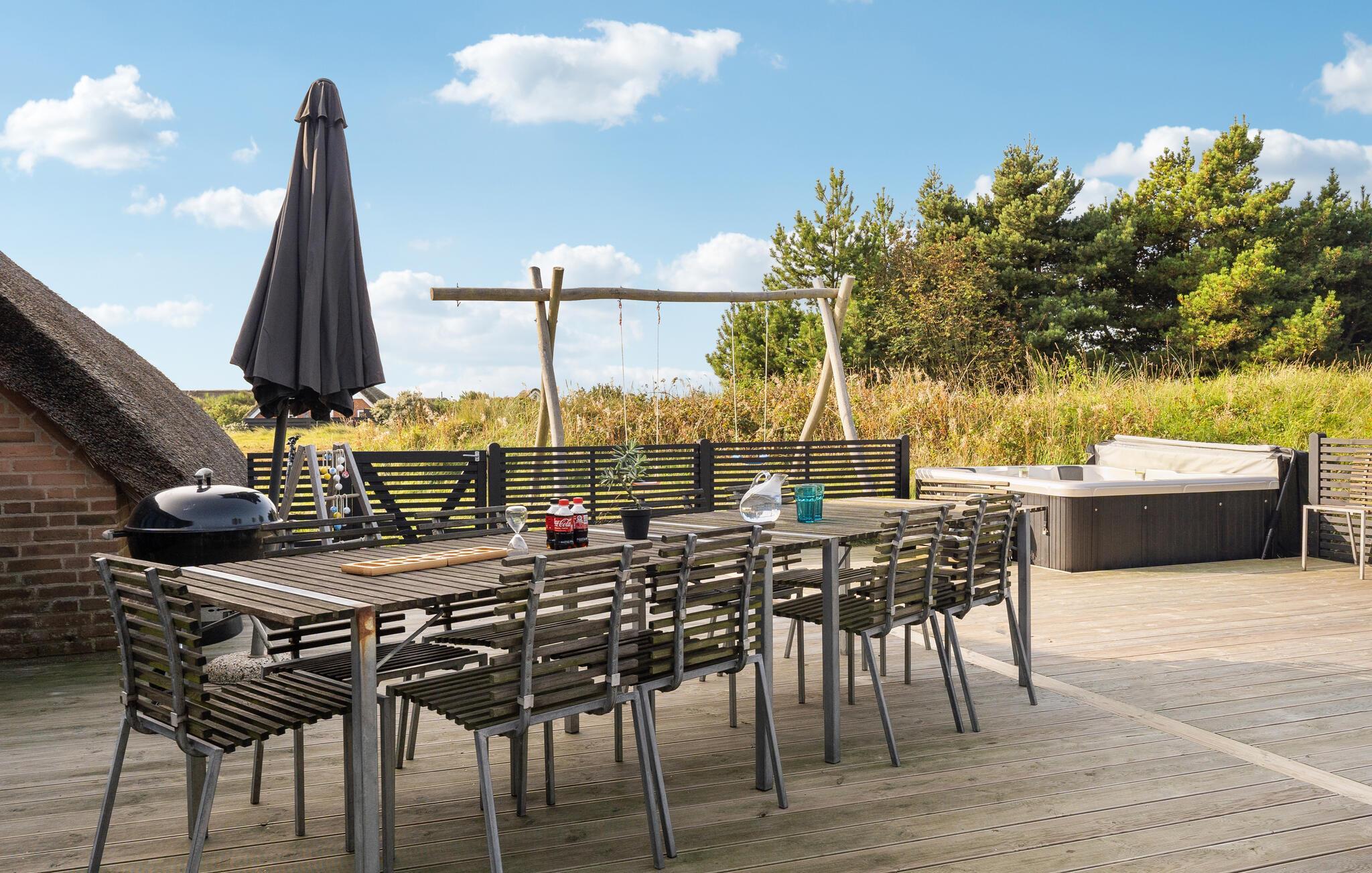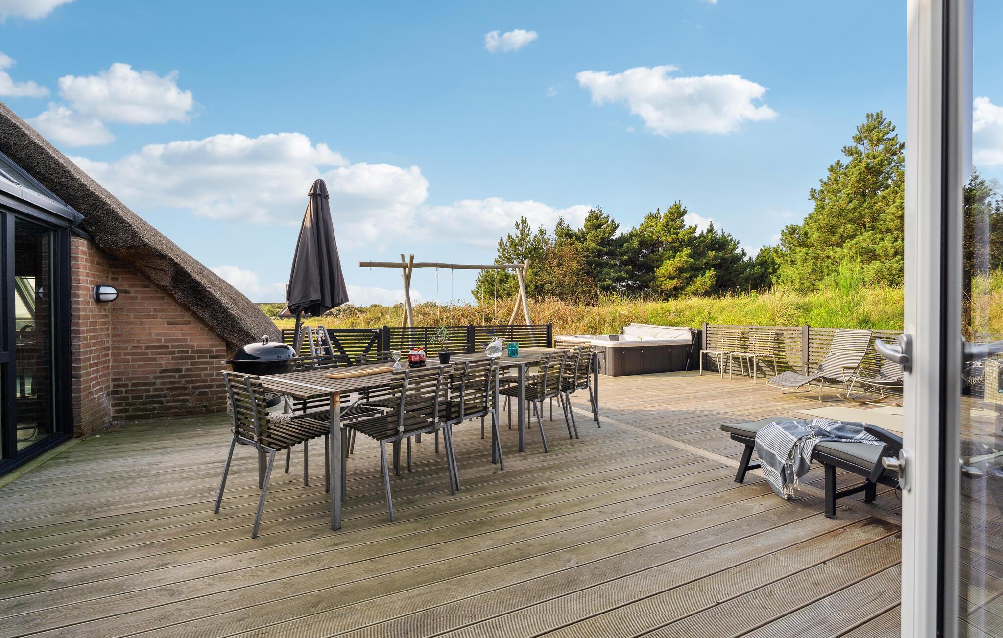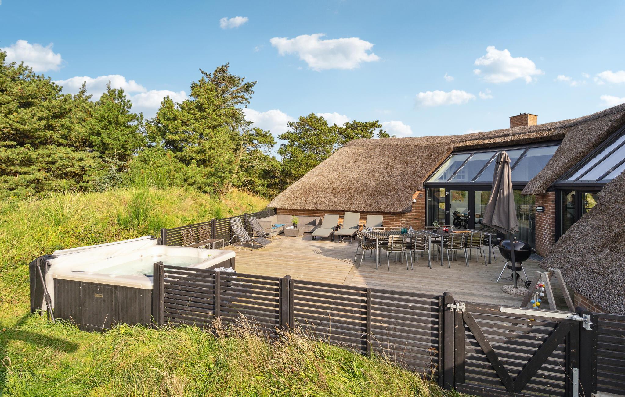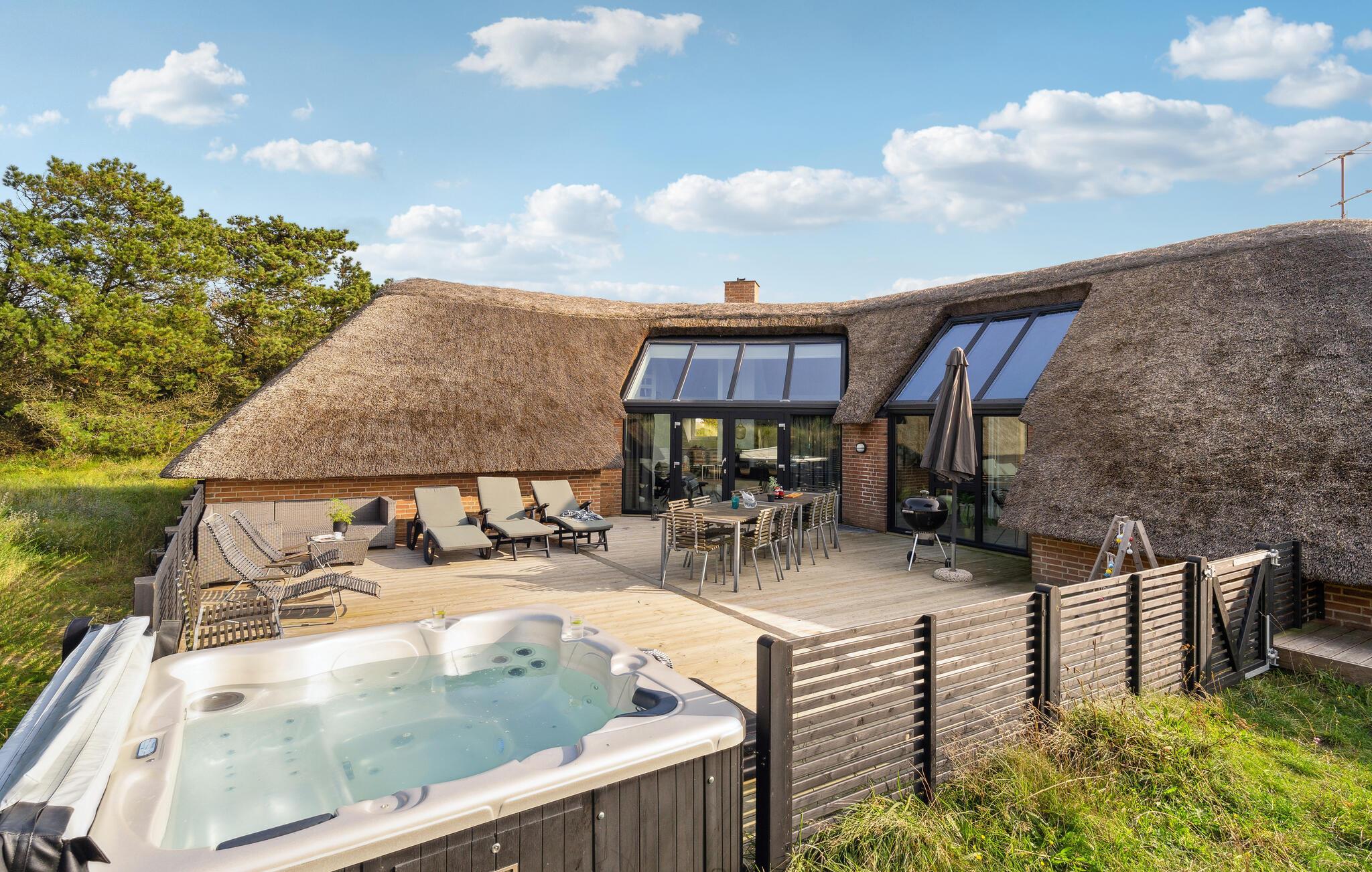 Erleben Sie Erholung pur in diesem reetgedeckten Ferienhaus mit Pool, Sauna und Strandnähe in Klegod, Dänemark.