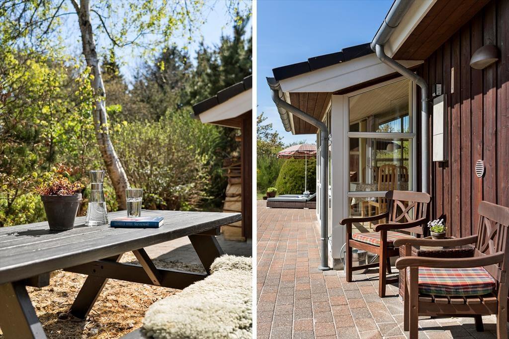 Auf dem Naturgrundstück gibt es Wiese, Bäume und Büsche, die vor dem Wind schützen. Im Norden liegt eine kleine gemütliche Terrasse, auf der Südseite befindet sich eine lange Terrasse mit einem überdachten Bereich, unter dem Sie einen der lauen Sommerabende mit einer Tasse Kaffee genießen können.