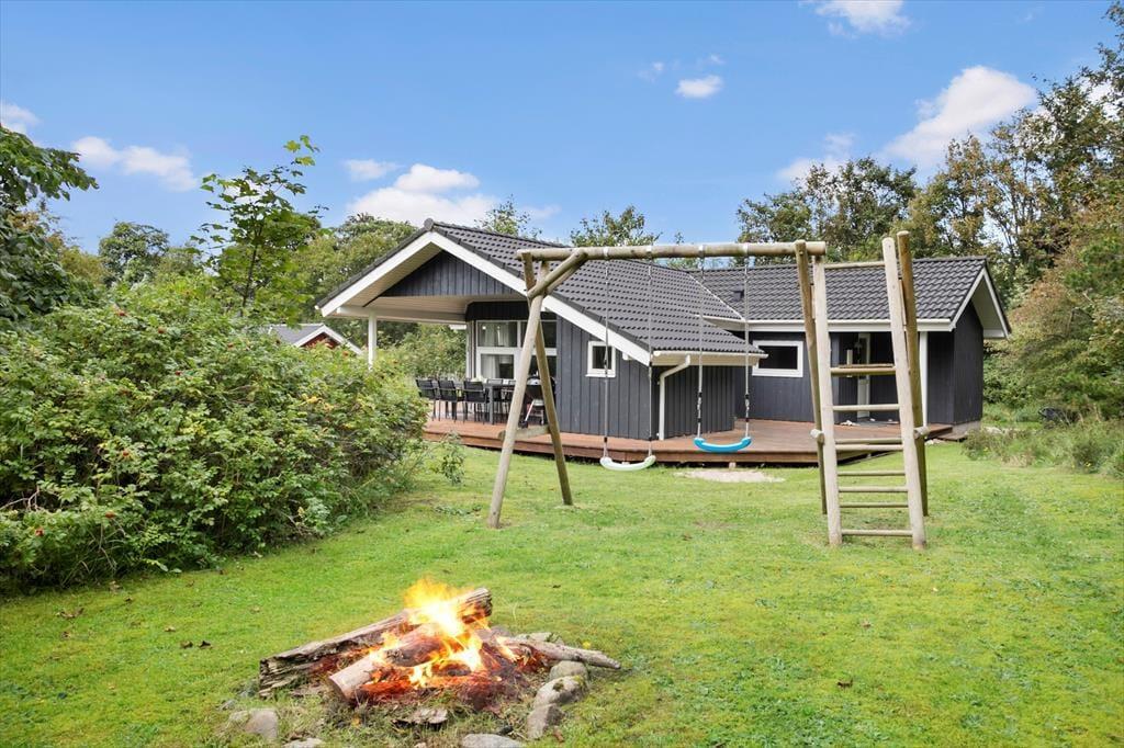 Rund um das Ferienhaus gibt es schöne Terrassen, u. a. im Süden einen überdachten Bereich, auf dem Sie mit dem Weber-Grill sich laue, extralange Sommerabende versüßen können. Die Kinder finden ausreichend Platz zum Spielen und Toben auf dem großen Naturgrundstück. Einfach beste Bedingungen im Freien.
