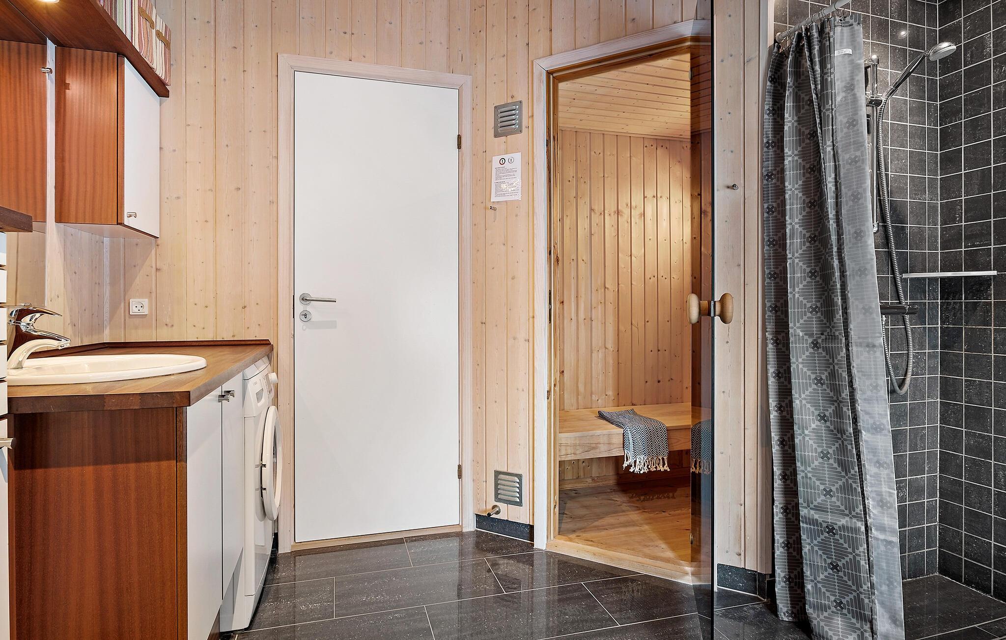 Genießen Sie Ihren Urlaub in diesem schönen Ferienhaus auf einem schönen Naturgrundstück und tauchen in die behagliche Stimmung des Hauses ein. Das große Panoramafenster im Wohnraum schafft eine einladende Verknüpfung zwischen dem Innenraum und dem Garten und lässt Sie auf dem Sofa oder am Esstisch gesellige Stunden verbringen. Freuen Sie sich auch auf das Wellnessangebot des Hauses und nehmen ein Bad in der Whirlpool-Badewanne oder schwitzen in der Sauna Ihre Alltagssorgen aus.