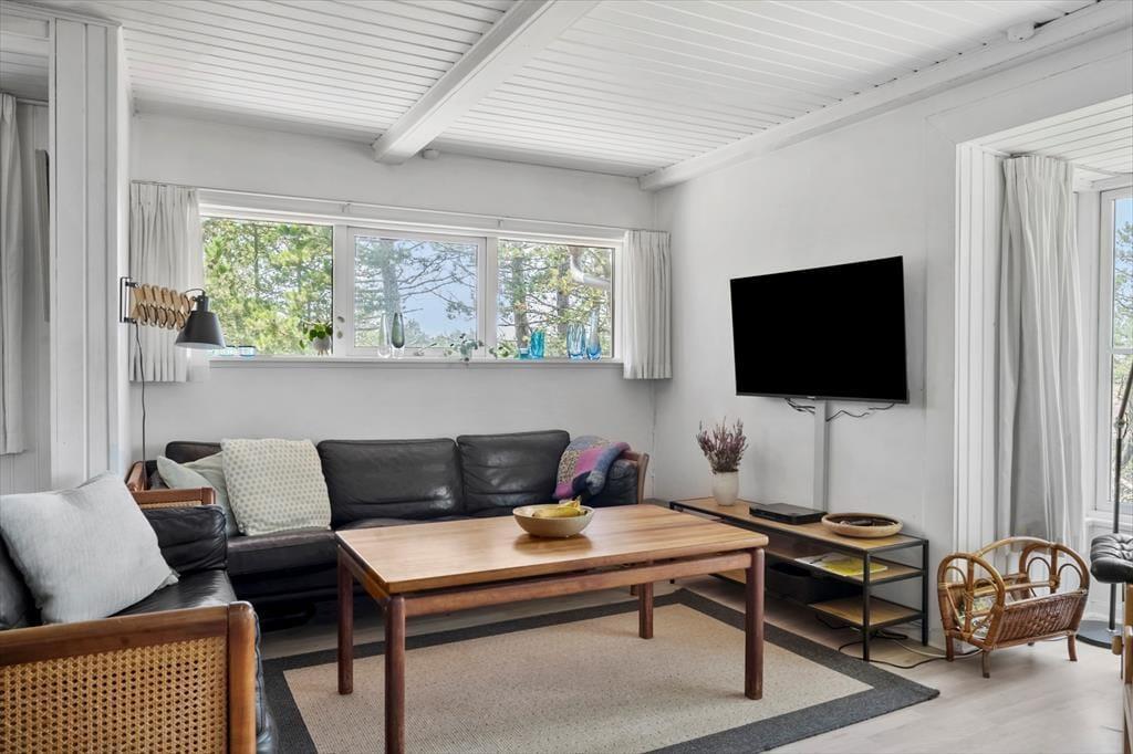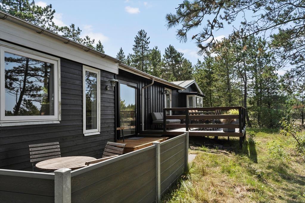Das Haus wurde mit viel Respekt vor dem ursprünglichen, klassischen Landhauscharme komplett renoviert. Es ist harmonisch und dezent in die schöne Naturlandschaft eingebettet, und zusätzlich zum Haus von 72 m² erhältst du einen Anbau von 20 m², so dass du bei der Verteilung der Schlafplätze zusätzliche Flexibilität hast. Im Inneren des Hauses herrscht eine helle und einladende Atmosphäre. Du erhältst unter anderem ein großes, stimmungsvolles Wohnzimmer mit offener Küche und gemütlichen Ecken, perfekt für die gemütliche Zweisamkeit. Große Fenster nach Süden und Westen tragen sowohl zum Lichteinfall als auch zum Ausblick bei, und der Kaminofen ist bereit, den Raum zu erwärmen, wenn du dich drinnen entspannen möchtest. Darüber hinaus verfügt das Haus über ein Schlafzimmer mit Doppelbett und zwei Zweibettzimmer. Zudem gibt es noch zwei weitere Betten im Anbau.