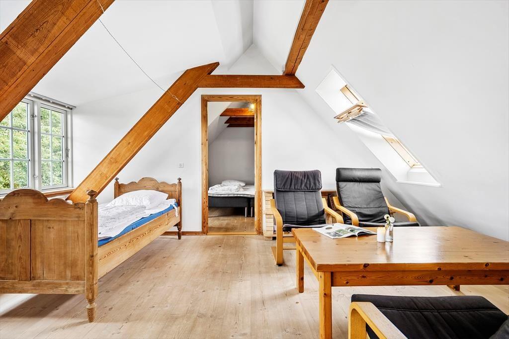 Willkommen in deinem Ferienhaus: Das Haus verfügt über eine großzügige, im französischen Landhausstil gestaltete Wohnküche mit Kamin, in der die ganze Familie gemütlich am Esstisch zusammenkommen kann. Die beiden Flügel sind durch ein wunderschönes Wintergarten/Glashaus verbunden, das viel Licht hereinlässt und direkten Zugang zum Innenhof bietet, der das Zentrum aller Gebäude bildet. Im Erdgeschoss befinden sich zudem zwei Bäder, gestaltet mit rustikalen Materialien, passend zum Stil des Hauses, sowie ein Schlafzimmer. Im ersten Stock gibt es ein Wohnzimmer mit atemberaubendem Blick auf den Großen Belt sowie vier weitere Schlafzimmer, einige davon ebenfalls mit Meerblick.