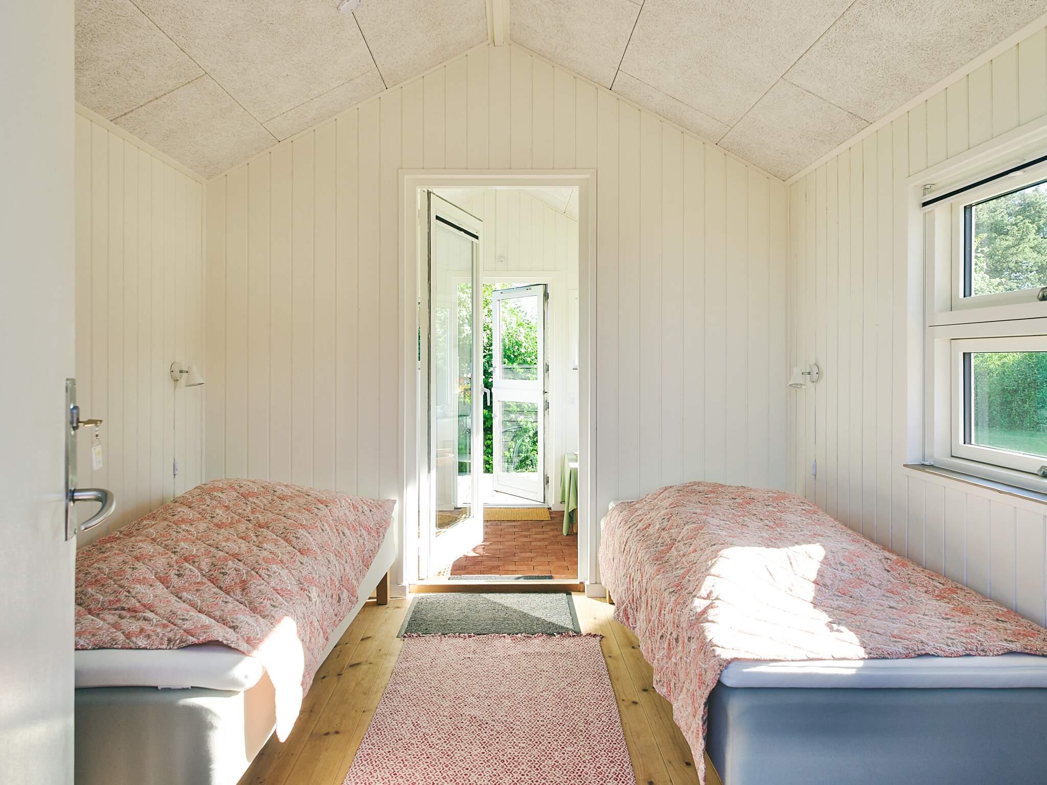 Das Ferienhaus verfügt über zwei Schlafzimmer mit jeweils zwei Betten sowie einen separaten Anbau mit zwei Einzelbetten und einem kleinen Sofazimmer mit Kühlschrank und großer Glasfront, von der aus Sie den Blick über die Felder genießen können. Der Anbau liegt direkt gegenüber dem Ferienhaus und bietet bequemen Zugang zu einem eigenen Badezimmer im Haus.