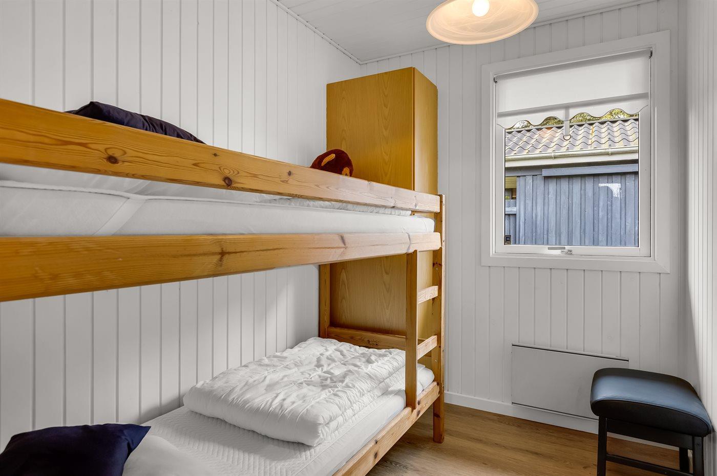 Die Schlafplätze verteilen sich auf 3 Schlafräume. 2 Schlafplätze in einem Doppelbett. 2 Schlafplätze in Einzelbetten. 2 Schlafplätze in einem Etagenbett. Ferner steht ein Kinderbett zur Verfügung.
