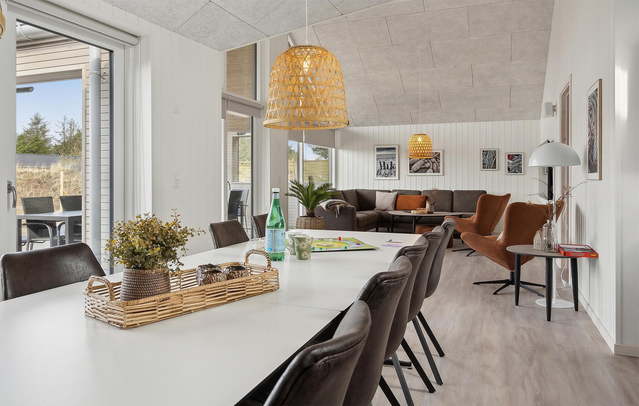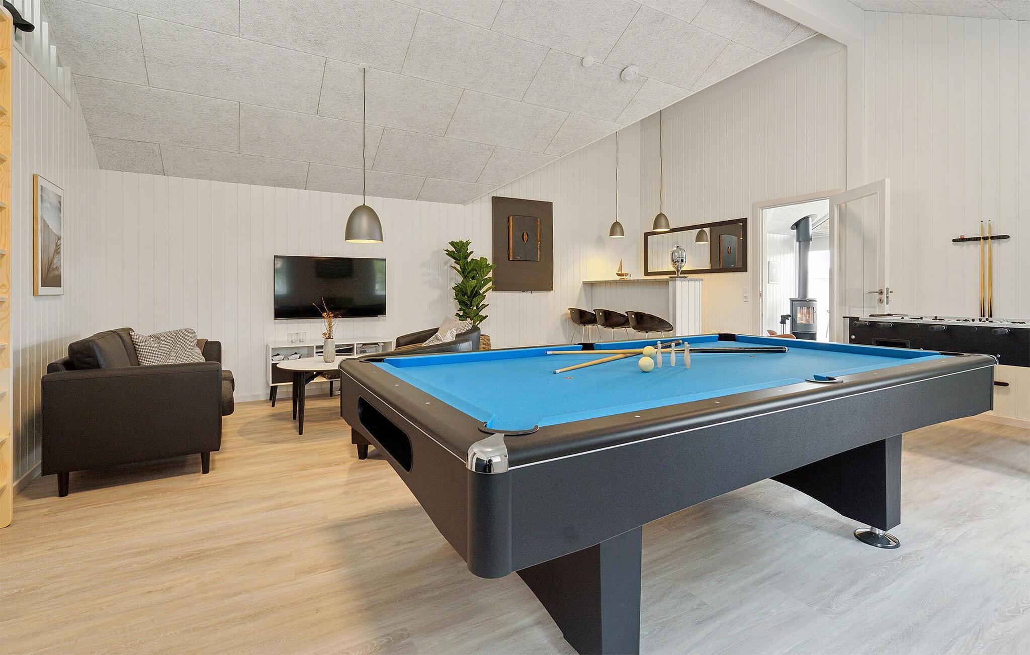 Freuen Sie sich auf Ihren Urlaub in Kongsmark und dieses großartige Haus, das Ihnen einen unvergesslichen Urlaub verspricht. Reisen Sie mit Ihrer Großfamilie oder befreundeten Familien an und entdecken die Höhepunkte des komfortablen Hauses. Teilen Sie das Haus in einen Kinderflüge mit zahlreichen, hellen Schlafzimmern, Schlafboden und dem angrenzenden Aktivitätsraum auf, sodass die Jüngeren in der Familie sich beim Billard oder Tischtennis austoben können. Die Erwachsenen können es sich zeitgleich im einladenden und komfortablen Wohnzimmer oder am Esstisch gemütlich machen, in den Garten blicken und kühle Getränke und Snacks genießen. Die gesamte Gruppe wird sich über den innenliegenden Pool sowie Sauna freuen. Badespaß und Entspannung sind daher vorprogrammiert und versprechen Ihnen unterhaltsame Stunden.