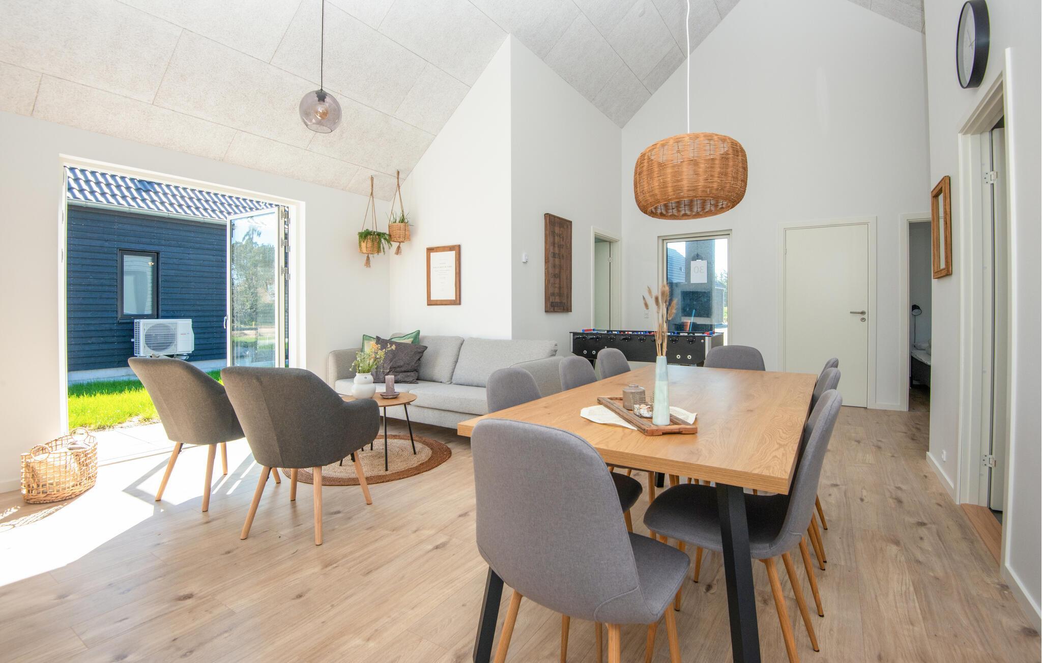 Das Hotelhaus ist ideal für eine oder zwei Familien und bietet alle notwendigen Einrichtungen für einen gelungenen Urlaub. Das Haus verfügt über eine helle und offene Wohnküche, die zugleich als Ess- und Wohnbereich dient. Hier gibt es eine gemütliche Sofaecke, in der Sie sich vor dem 55-Zoll-Fernseher mit einer großen Auswahl an Kanälen versammeln, ein gutes Buch lesen oder sich bei Brettspielen messen können. Zudem steht Ihnen kostenloses und schnelles Internet zur Verfügung.