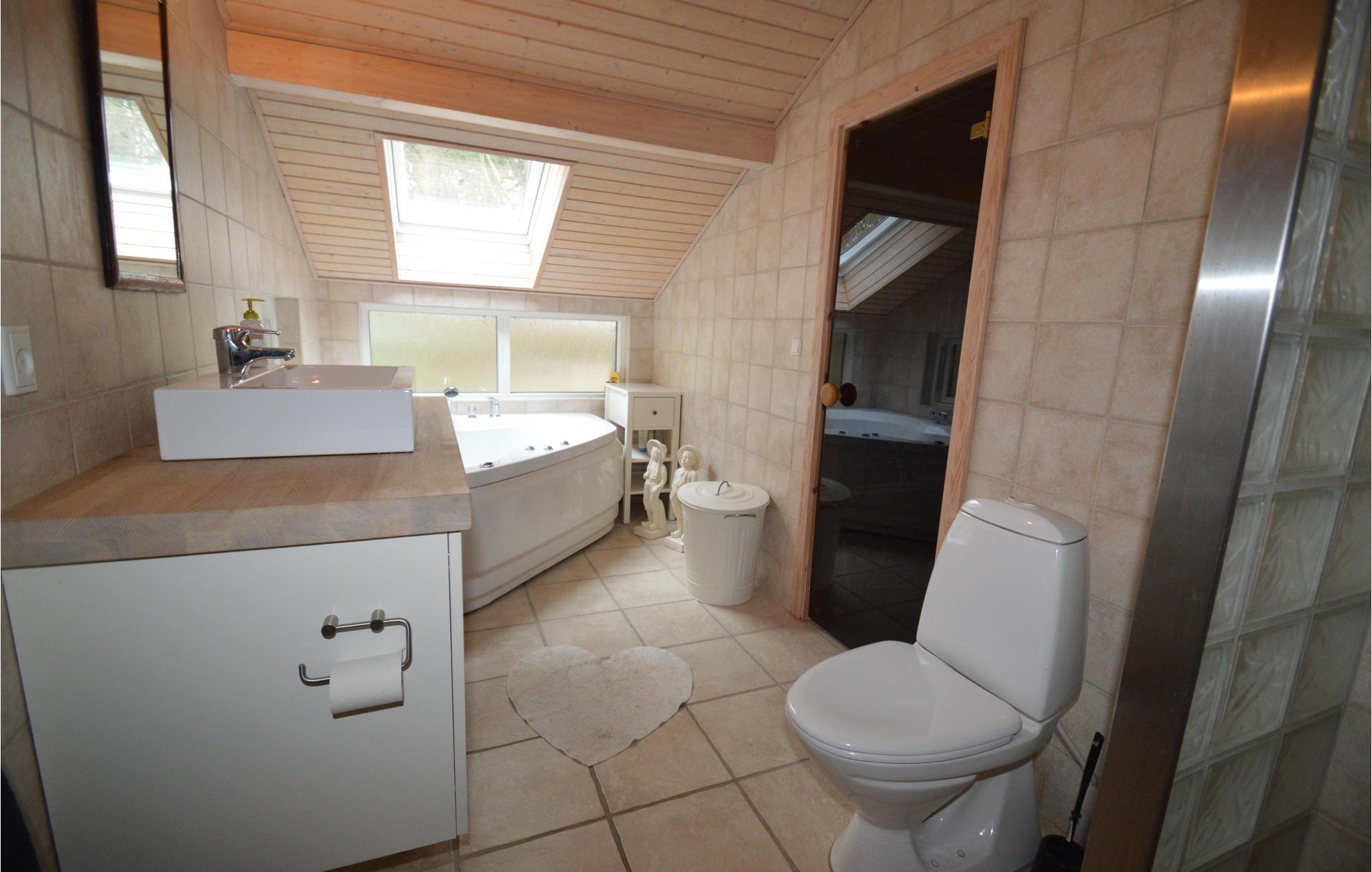 Verbringen Sie Ihren nächsten Dänemarkurlaub in diesem schönen Ferienhaus bei Kostræde Banker in der Nähe der Stadt Næstved. Das Haus liegt auf einem hübschen Naturgrundstück und in ruhiger Umgebung. Genießen Sie im Innenraum eine offene Wohnküche, von der Sie Zugang zur Terrasse haben. Das Badezimmer hat eine Dusche, Whirlpool und Sauna. Die Inneneinrichutng besteht aus bequemen Möbeln und Betten, die für Komfort sorgen. Sie wohnen in diesem Ferienhaus nicht weit vom Dybsø Fjord, in dem Sie schwimmen und angeln können.