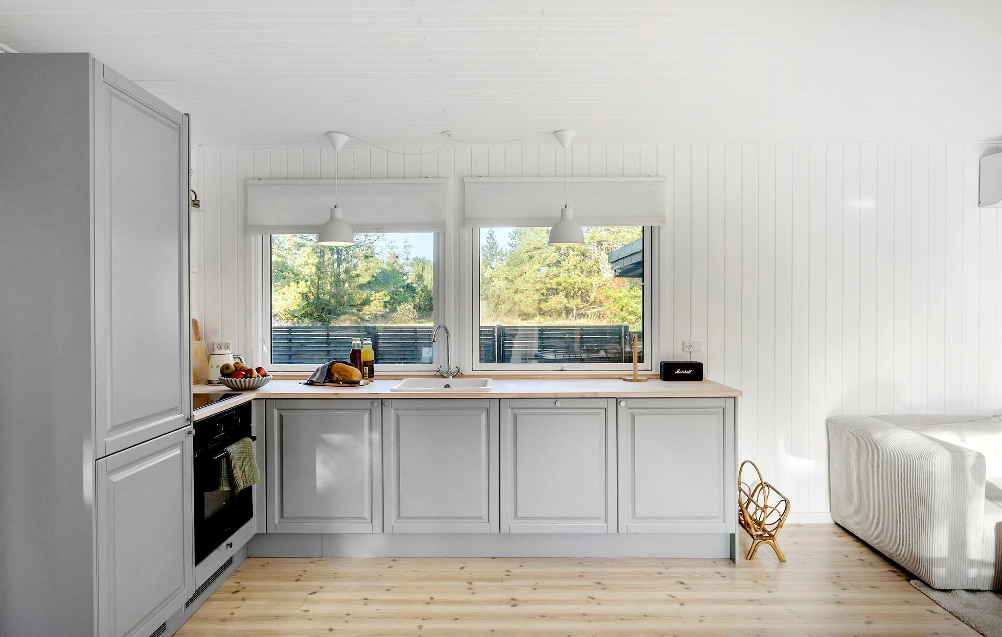 Ihr Ferienhaus bietet Ihnen alles, was Sie für einen komfortablen Aufenthalt benötigen. Der offene Wohnbereich mit seiner eleganten Ausstattung sorgt für eine behagliche Atmosphäre. Machen Sie es sich in der einladenden Sitzecke gemütlich und schauen Sie einen spannenden Film. Die großen Fenster lassen viel Tageslicht hinein und verleihen dem Raum eine freundliche und offene Ausstrahlung. Die offene Küche ist gut ausgestattet und lädt zum gemeinsamen Kochen ein.
