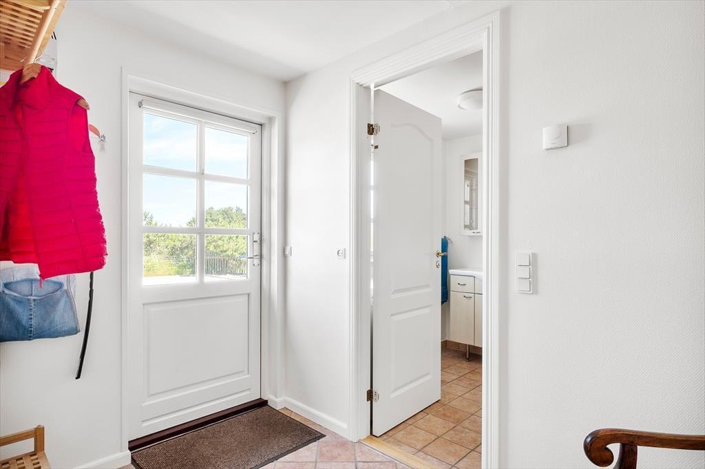 Vom Wohnbereich aus gibt es einen direkten Ausgang, sodass du an warmen Tagen die frische Sommerluft ins Haus lassen oder dich selbst an die frische Luft begeben kannst. Auf der gefliesten Terrasse kannst du zwischen mehreren guten Sitzgelegenheiten zum Entspannen oder Grillen wählen, und auf dem grünen Naturgrundstück findest du außerdem ein Spielgerüst mit Schaukel, einen Sandkasten und sogar einen Bouleplatz.