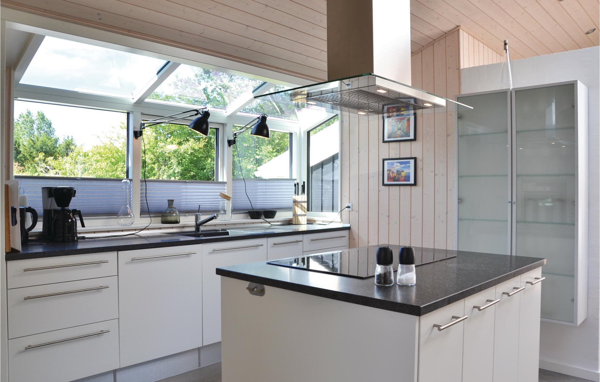 Das schöne Ferienhaus bietet Platz für die ganze Familie, es ist bis auf das kleinste Detail gut eingerichtet und sorgt so für einen bequemen Aufenthalt. Das Grundstück neigt sich bis zum Fjord hinunter und daher haben Sie vom Haus und der Terrasse eine schöne Aussicht. Schöne offene Wohnküche mit Eingang zum Hauswirtschaftsraum. Drei Schlafzimmer mit Doppelbetten. Im Badezimmer stehen Whirlpool und Sauna parat Sie zu schönen Wellnessstunden zum empfangen. Sie haben hier einen guten Stützpunkt für schöne Erlebnisse, Sie können den Fjord entlangspazieren und dabei an Restaurants, Boutiquen und einer Brauerei vorbeikommen. Für die Räder gibt es gepflegte Wege.