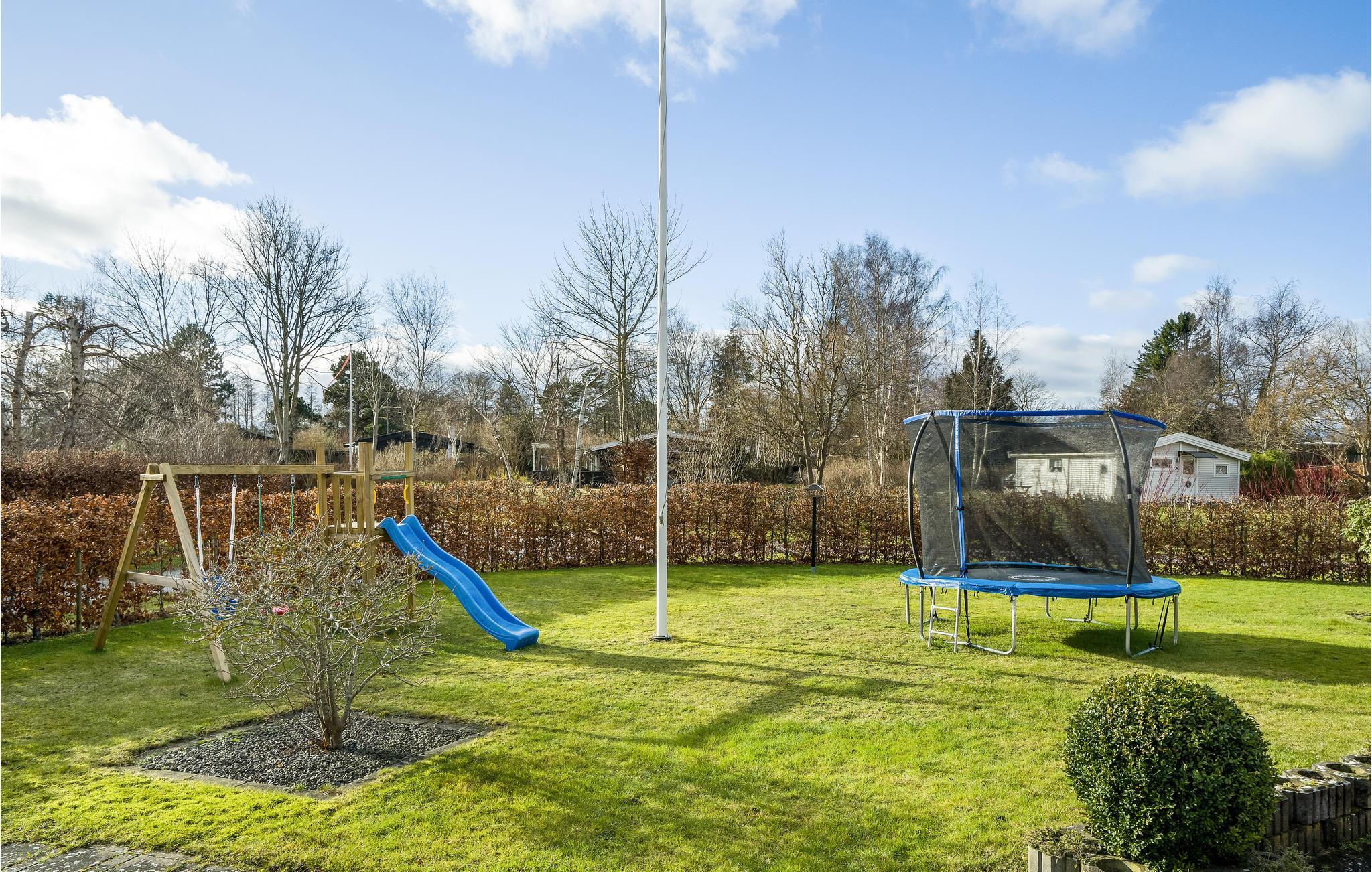 Das klassisch dänische Design und viel Qualität in der Wohnküche sorgen für einen richtigen Wohlfühlrahmen. Die Dachschrägen und mit Holz verkleideten Decken geben Ihnen ein unglaublich angenehmes Wohnklima. Selbiges hat ein interessantes Wohnkonzept, wobei die Hauptaufenthaltsräume funktionell miteinander verbunden dennoch durch Türrahmen abgegrenzt sind und dadurch dem Tageslicht genug Raum zum entfalten gibt. Diese Unterkunft bietet ebenso ein ideales Umfeld, wenn Sie mit Kindern reisen. Stellen Sie sich vor, das köstliche Frühstück mit frischem Kaffee in dieser heimeligen Küche vorzubereiten und darauffolgend sich bei Tisch drinnen oder draußen. Treten Sie raus auf die offene Terrasse, wo Sie grillen, lesen oder den Kindern beim vergnügen zusehen können. Für die Kleinsten gibt es auch einen Außenspielplatz mit Trampolin, Schaukel, Rutsche und Spielhaus.