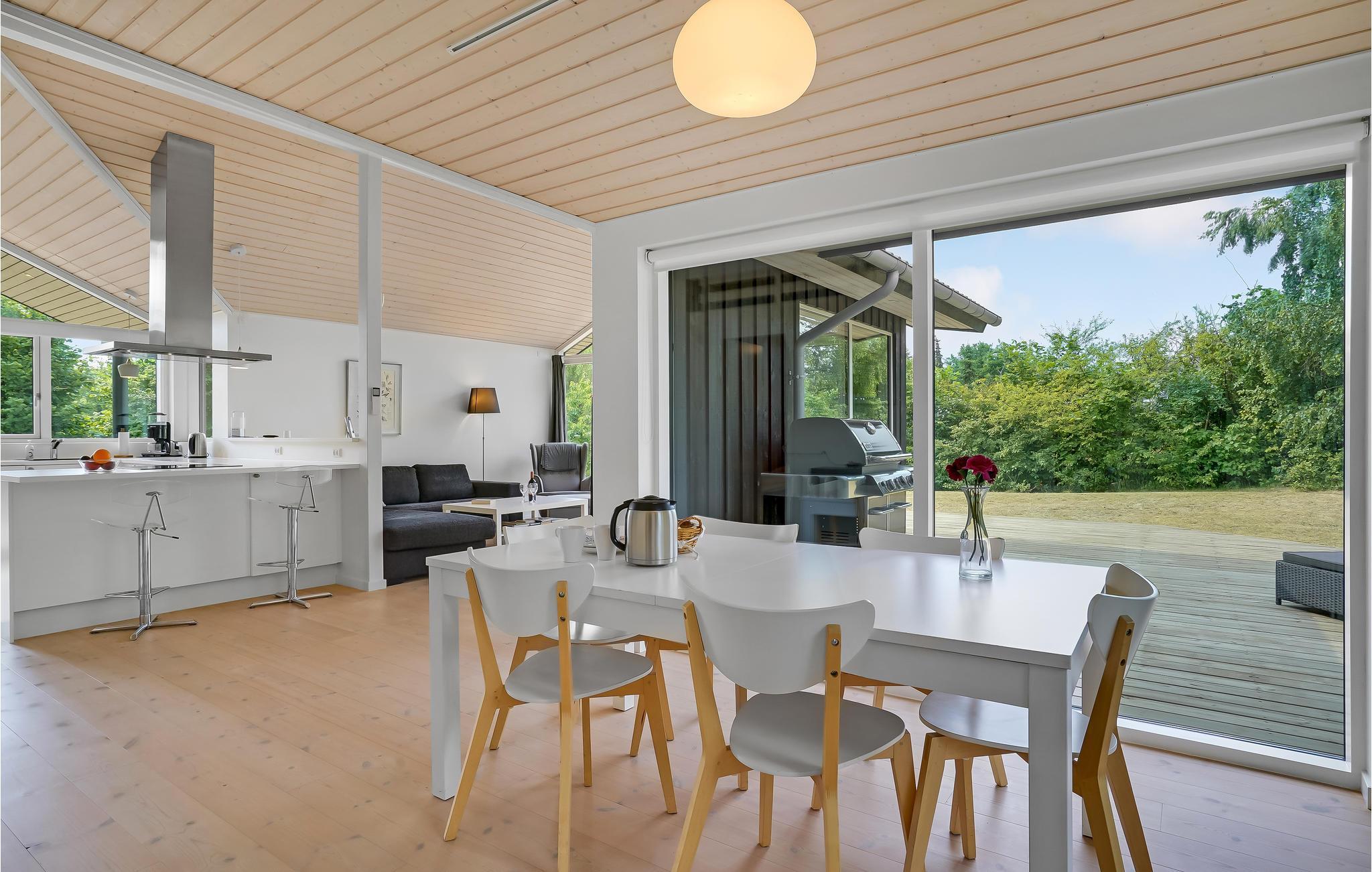Hier, wo Roskilde Fjord und Isefjord sich küssen, liegt dieses geschmackvolle Ferienhaus mit Platz für die ganze Familie. Das Haus ist gut eingerichtet und durch die großen Fensterpartien fällt viel Licht in den geräumigen Wohnraum, der auch einen Essplatz und eine offenen Küche bereithält.