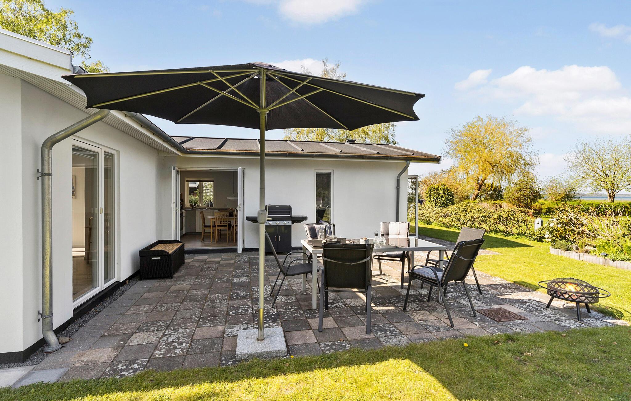 Gemütliches Ferienhaus am Roskilde Fjord mit Terrasse, Garten und direktem Zugang zum Strand für erholsamen Urlaub.