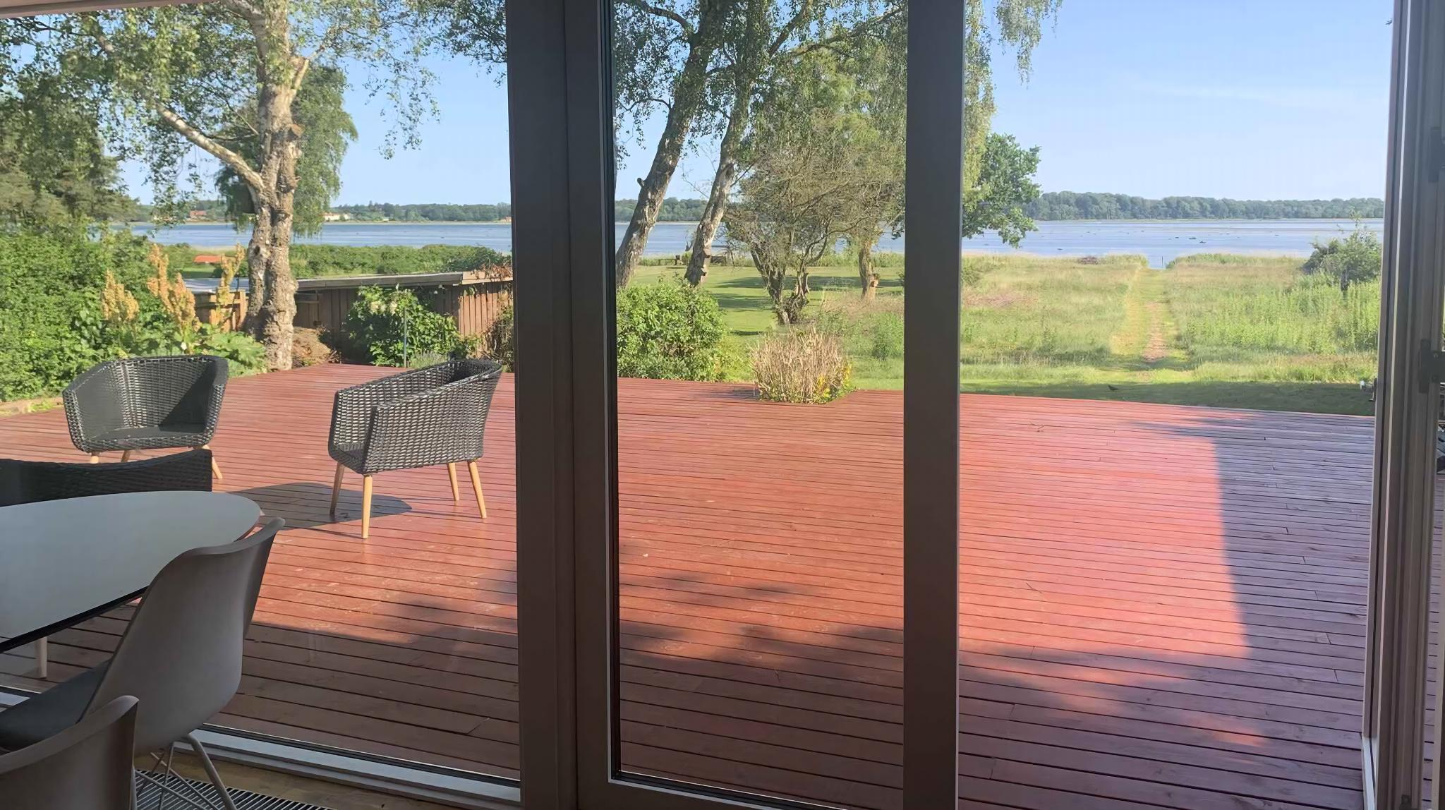 Modernes, helles Ferienhaus in Kulhuse, 50 km von Kopenhagen. Große Terrasse mit Fjordblick, Wintergarten mit Grill, Innenhof, Carport. Nahe Strand, Angeln, Nordwald und Einkauf in Frederikssund. Ideal für Ruhe und Naturerlebnisse.