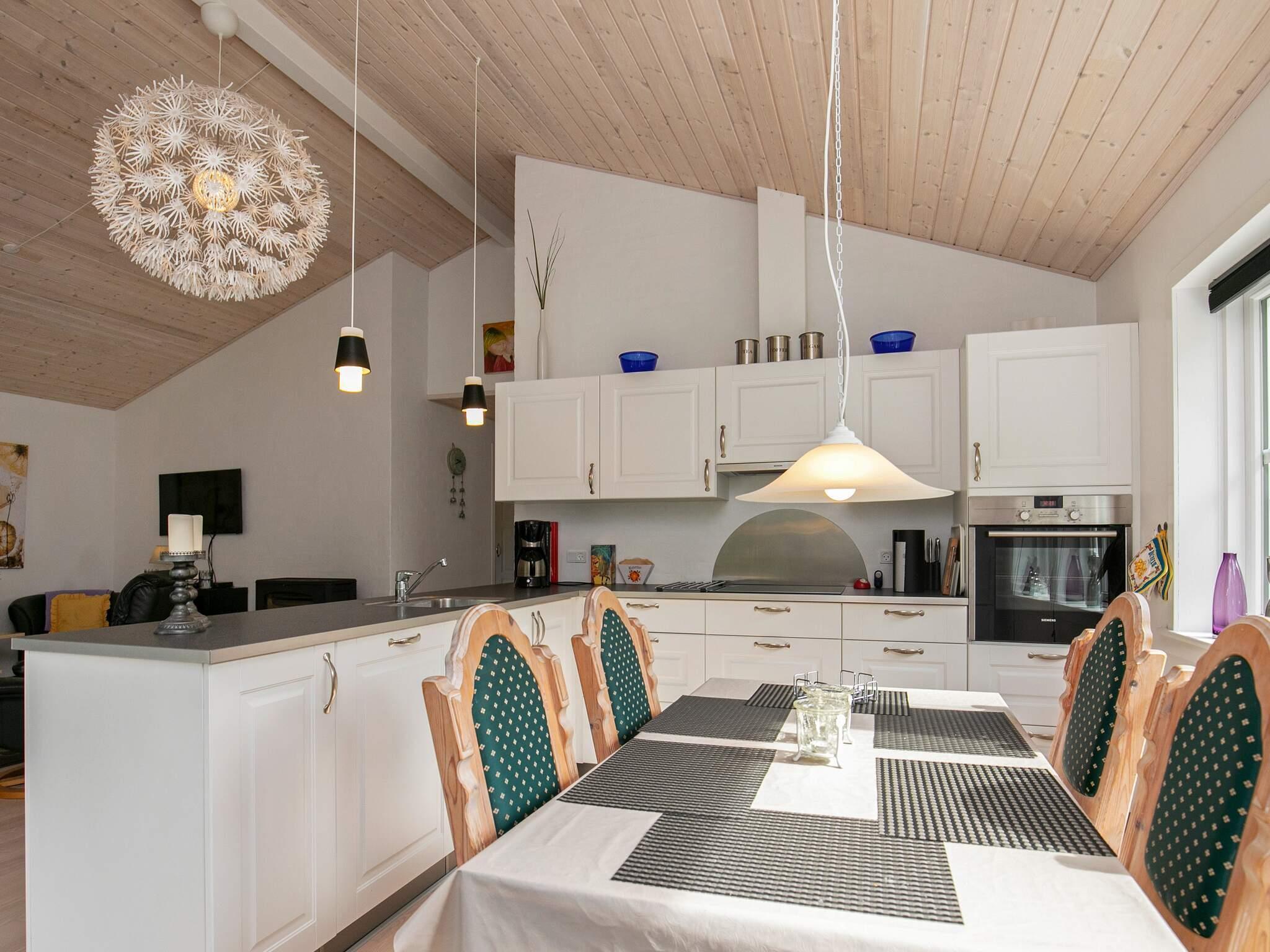 Das Ferienhaus ist geschmackvoll eingerichtet und bietet drei geräumige Schlafzimmer mit bequemen Betten für den erholsamen Schlaf. Zudem Badezimmer mit Dusche, Fußbodenheizung und einer Waschmaschine vorhanden. Die Küche ist offen in den Wohnbereich mit Essecke intergriert, der den Mittelpunkt des Hauses bildet. Hier gibt es viel Tageslicht und Platz für das Familienleben und auch einen Holzofen für kühlere Abende.