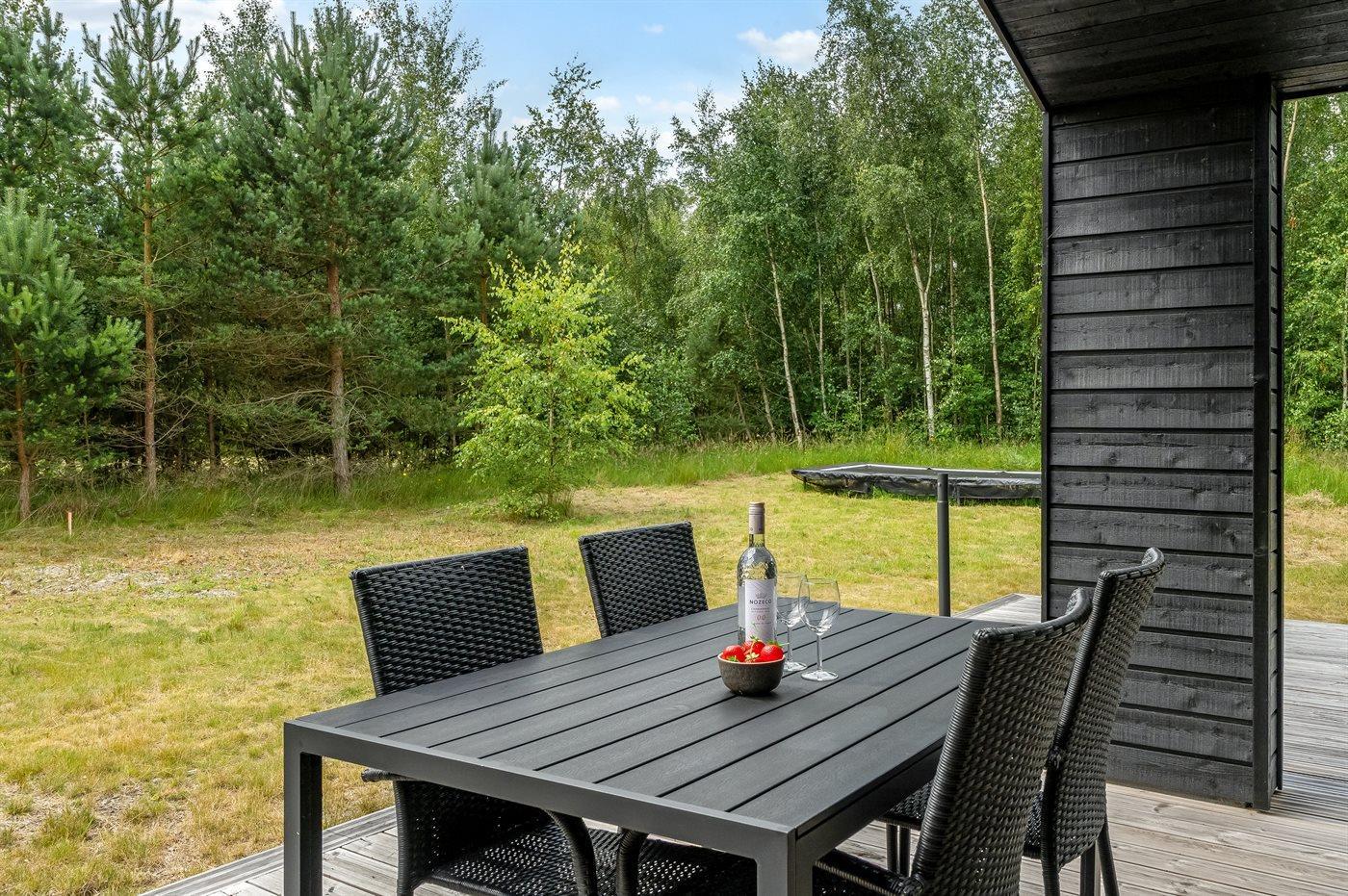 Auf der rund ums Haus verlaufenden Terrasse hast du viele Möglichkeiten, ein windgeschütztes oder schattiges Plätzchen zu finden – oder einfach der Sonne zu folgen.