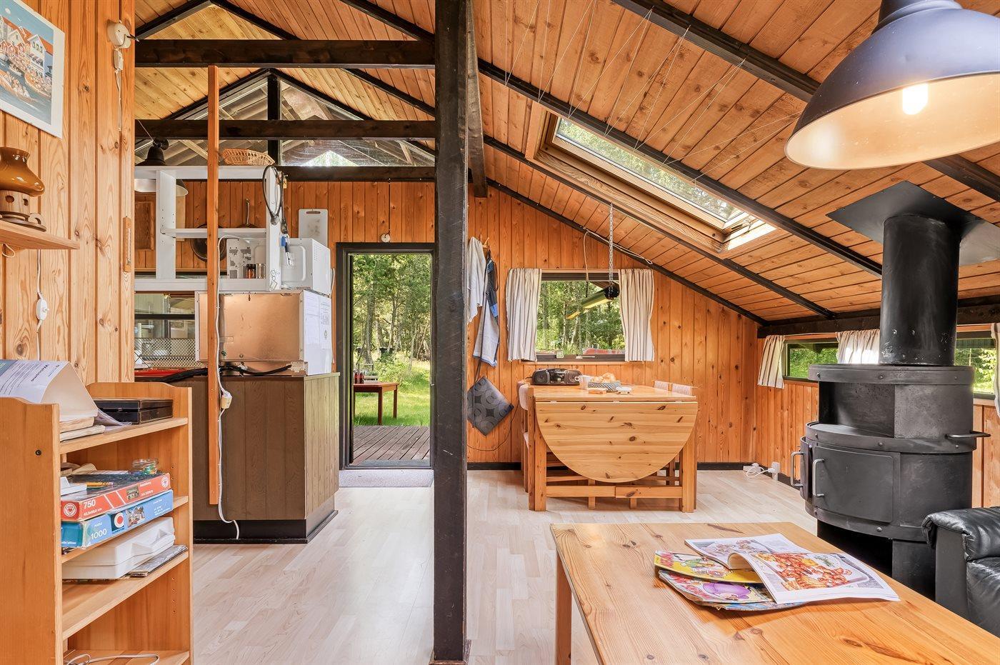 Ein älteres, praktisch eingerichtetes Ferienhaus auf Waldgrundstück in ruhiger Umgebung. Holzofen mit gratis Kaminholz.