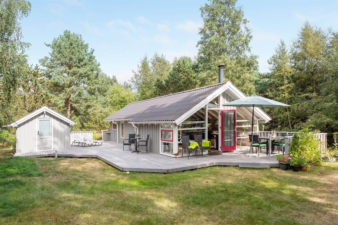 Gemütliches Ferienhaus nahe dem Meer auf sonnigem Heidegrundstück, ideal für Familien und Naturfreunde.