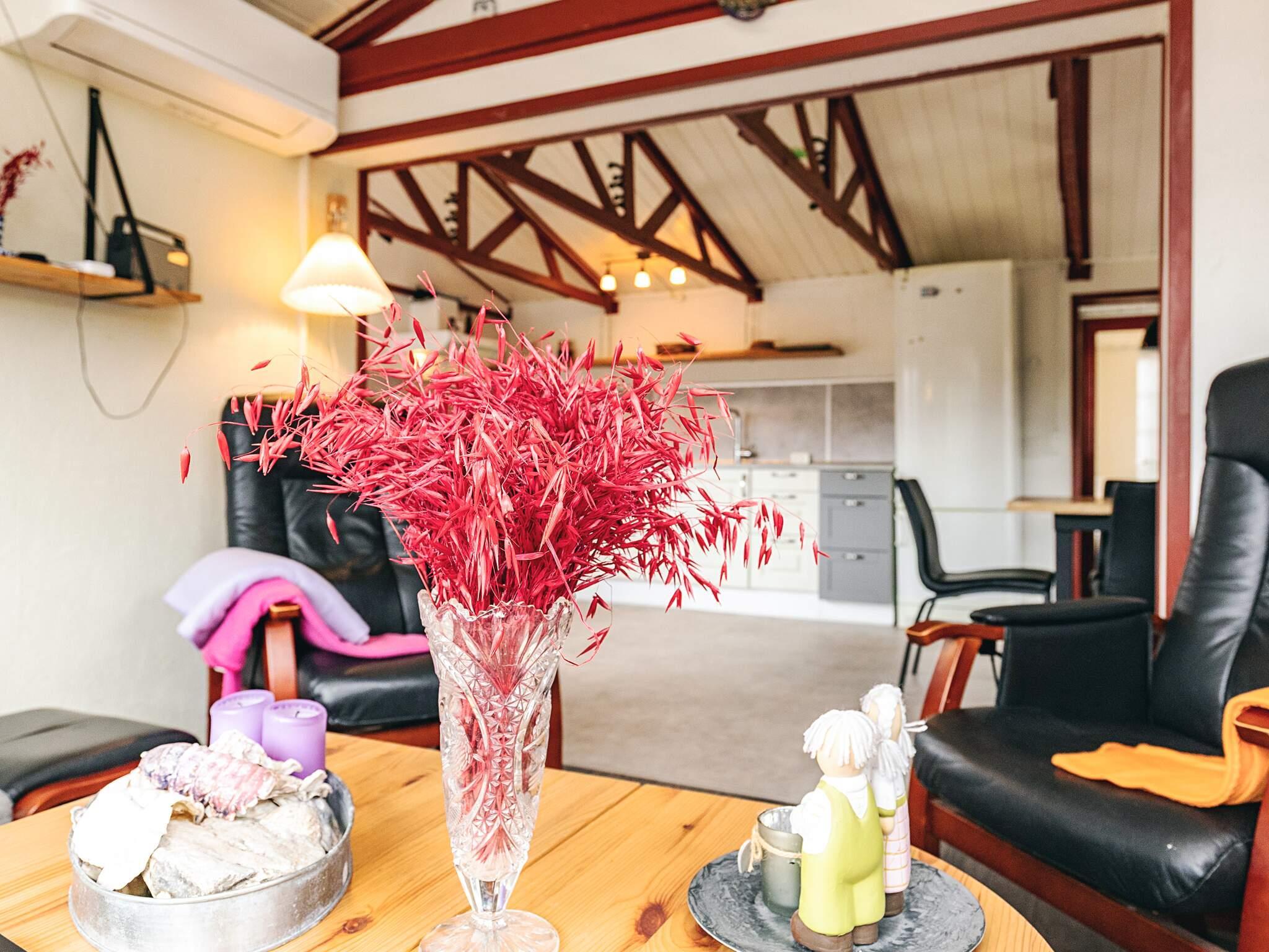 Das Haus hat 1 Schlafzimmer mit Doppelbett, einen Anbau mit bis zu 4 Betten und ein Doppelbett im Wohnzimmer.