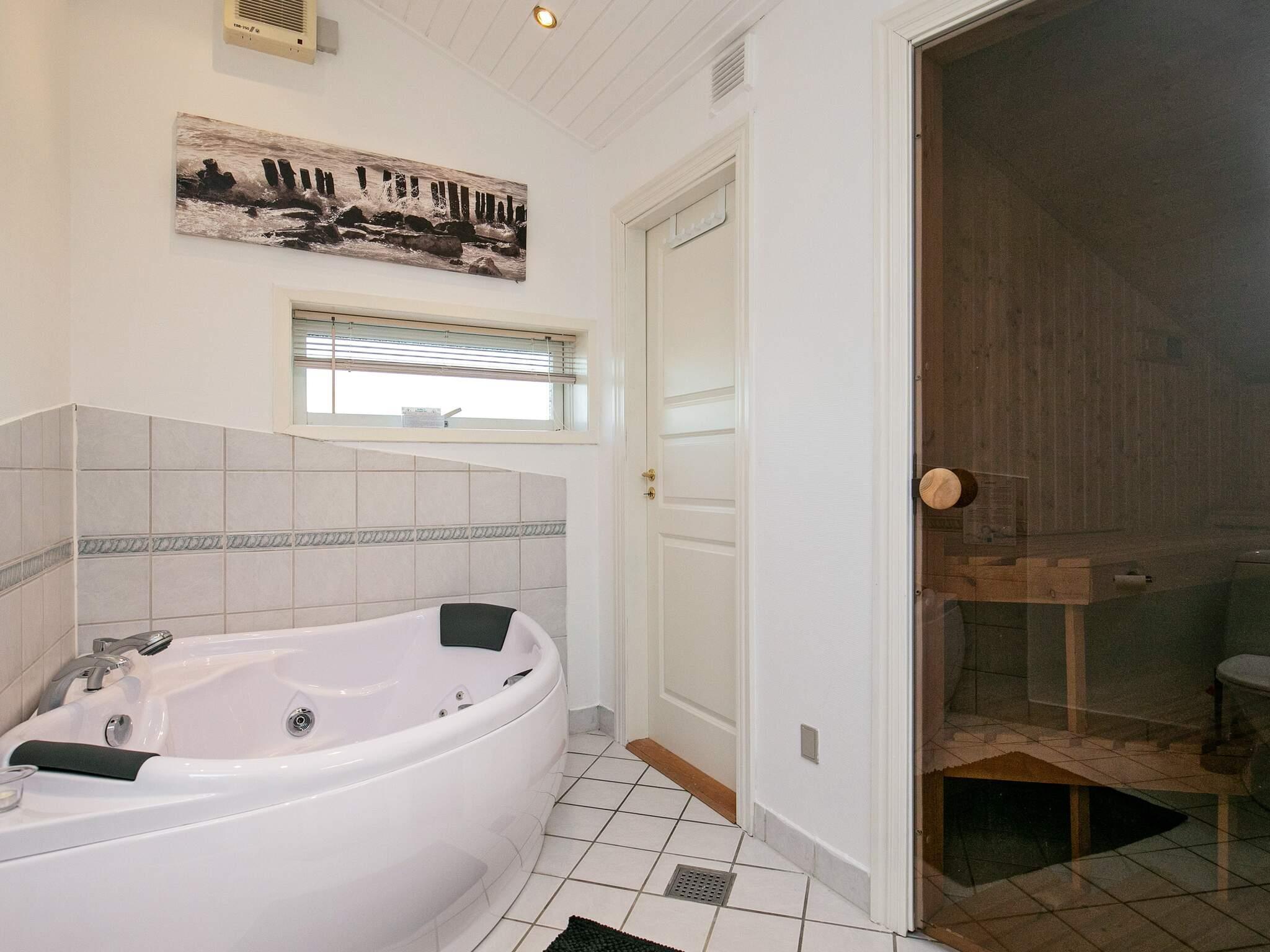 In fußläufiger Entfernung vom herrlichen Nordseestrand bei Løkken findet man dieses gemütliche Ferienhaus. Hier kann sich die Familie in dem gefliesten Küchen-/Wohnbereich des Hauses versammeln, in dem die Fußbodenheizung bei Bedarf für behagliche Wärme an den Füßen sorgt. Im Badezimmer gibt es ebenfalls angenehme Fußbodenheizung sowie einen Whirlpool und eine Sauna, damit Sie sich entspannen können. Im Haus zudem drei geräumige Schlafzimmer, zwei davon mit jeweils einem Doppelbett, das dritte mit Etagenbett ausgestattet. Außerdem Hems oben unter der Dachschräge und zusätzliche Toilette in Verbindung mit der Garage. Draußen auf der schön abgeschirmten Terrassenfläche gibt es viel Platz zum Erholen sowie für spielende Kinder und den Vierbeiner der Familie. Zudem Sandkasten auf dem Naturgrundstück.
