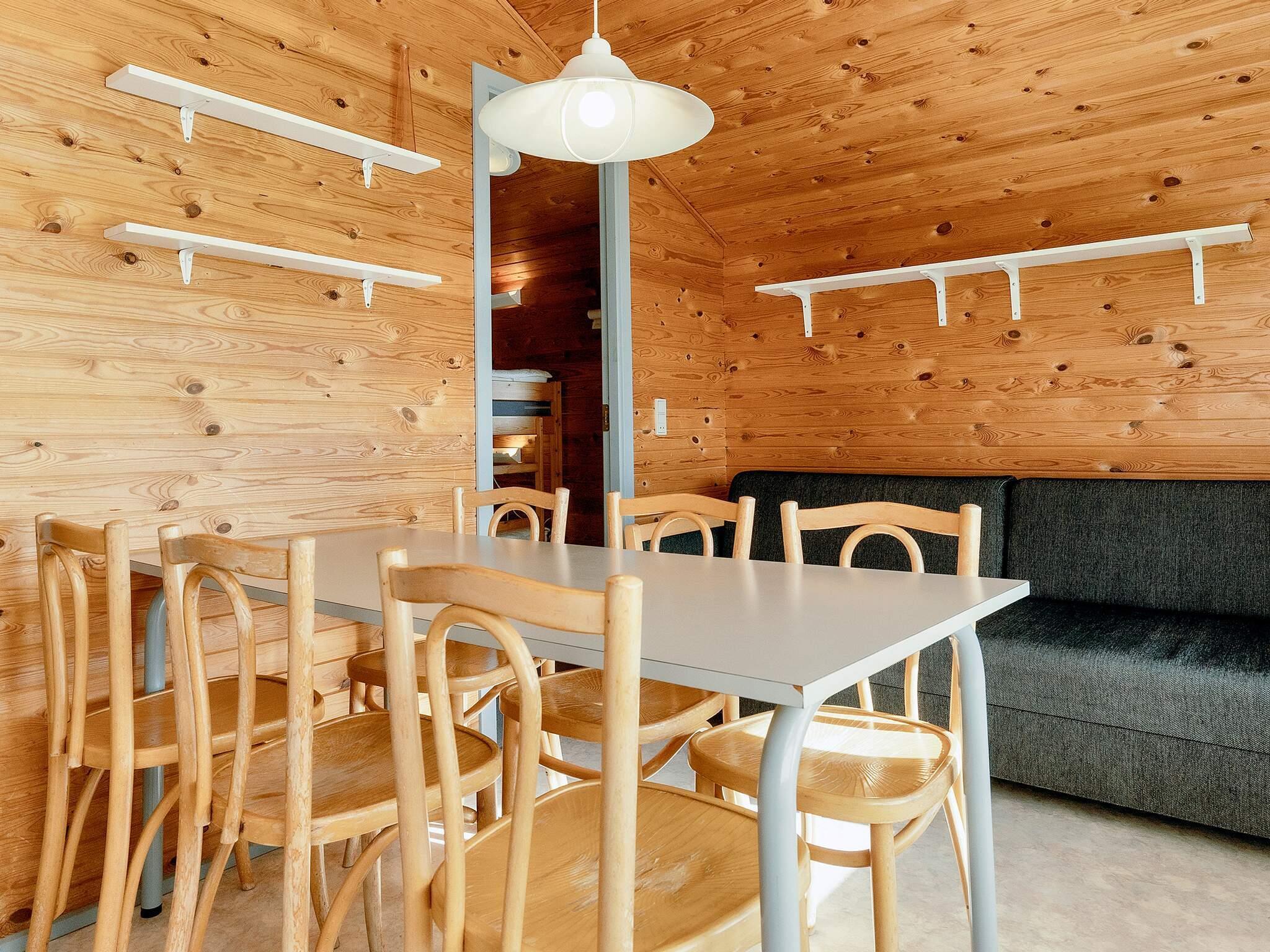 Das Ferienhaus in Dänemark ist für Familien und Gruppen geeignet und verfügt über zwei Doppelbetten und drei Etagenbetten sowie ein gemeinsames Badezimmer, das von beiden Zimmern aus zugänglich ist, und eine teilweise überdachte Holzterrasse in Südlage. Das Ferienhaus kann bis zu 5 Personen gleichzeitig beherbergen, so dass Sie einen tollen Urlaub verbringen und sogar Ihre Haustiere zum Spielen mitbringen können. Der Gemeinschaftsbereich verfügt über einen Esstisch mit vier Sitzplätzen aus Holz neben einem luftigen Fenster, um das Abendessen mit einem herrlichen Blick nach draußen zu genießen.