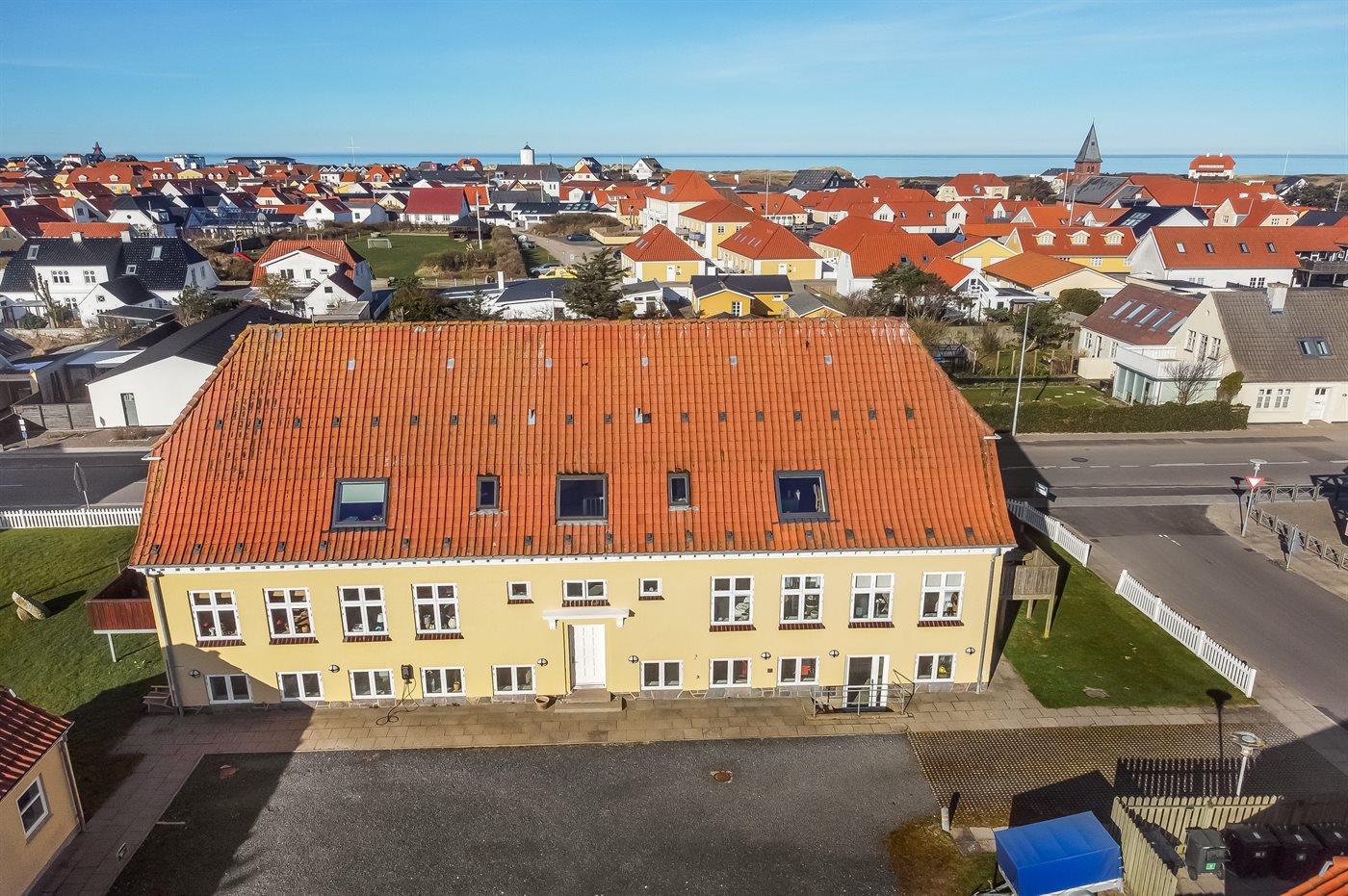 Ferienwohnung in der Stadt Løkken. Das Anwesen verfügt über 4 große Wohnungen - es ist möglich, alle 4 zu mieten, so dass es Platz für 22 Personen gibt. Übrigens: In dieser Ferienwohnung befinden sich 2 der Schlafplätze auf einem Doppelschlafsofa in der Wohnküche.
