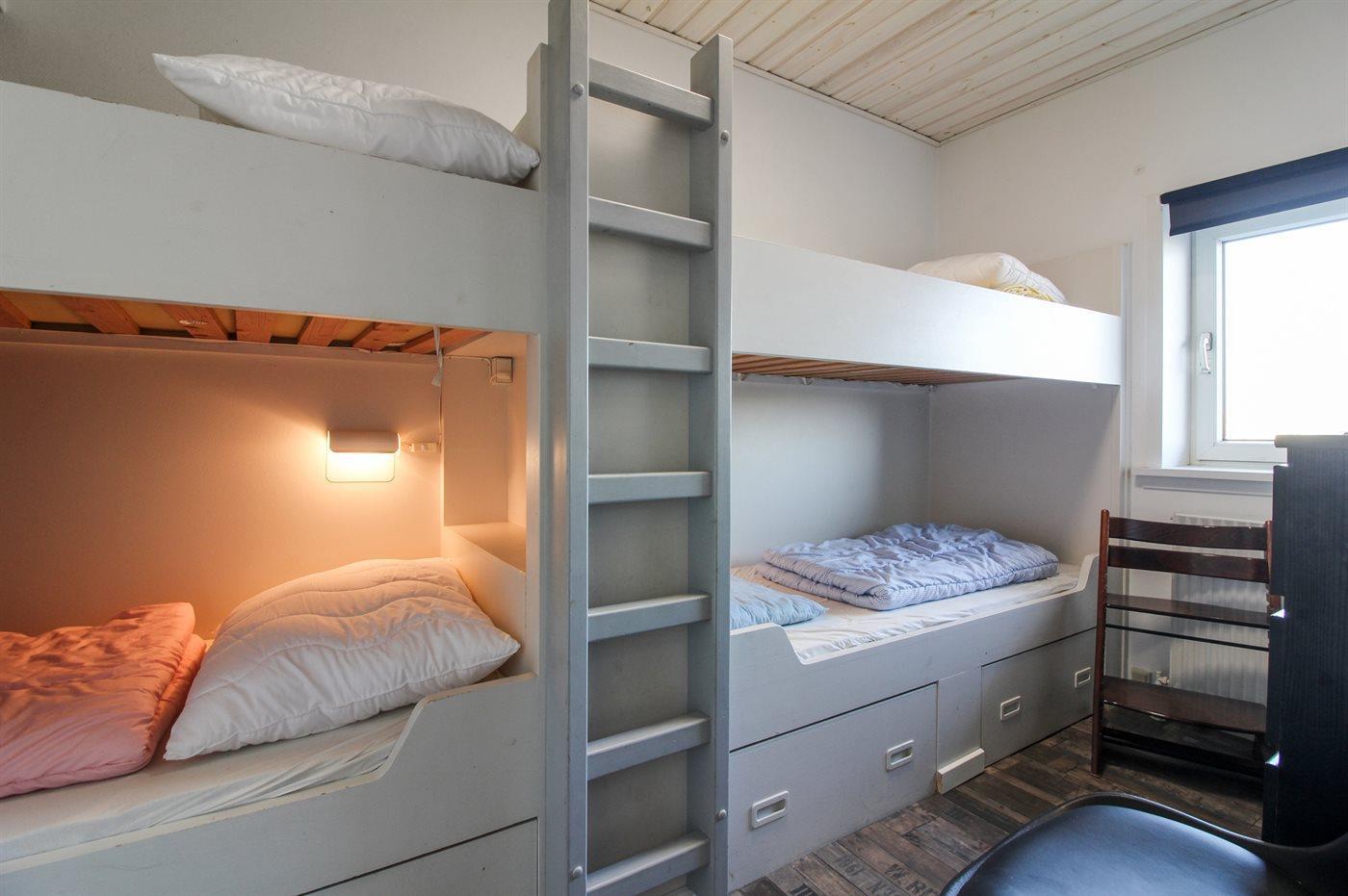 Die Schlafplätze verteilen sich auf 2 Schlafräume. 2 Schlafplätze in einem Doppelbett. 4 Schlafplätze in Etagenbetten.