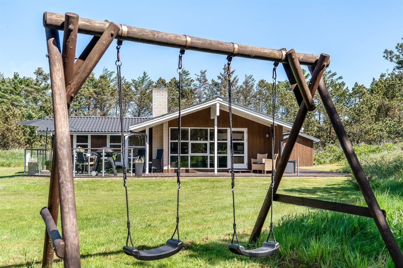 Die Ferienunterkunft liegt auf einem 2500 m² großen Naturgrundstück. Die Entfernung zum Meer beträgt 800 m. Die nächste Einkaufsmöglichkeit liegt 3000 m entfernt. Es steht ein 70 m² Terrassenareal zur Verfügung. Außerdem gibt es 8 m² überdachte Terrasse. Geräteraum. Schaukel. Sandkasten. Fußballtor. Parkplatz auf dem Grundstück.