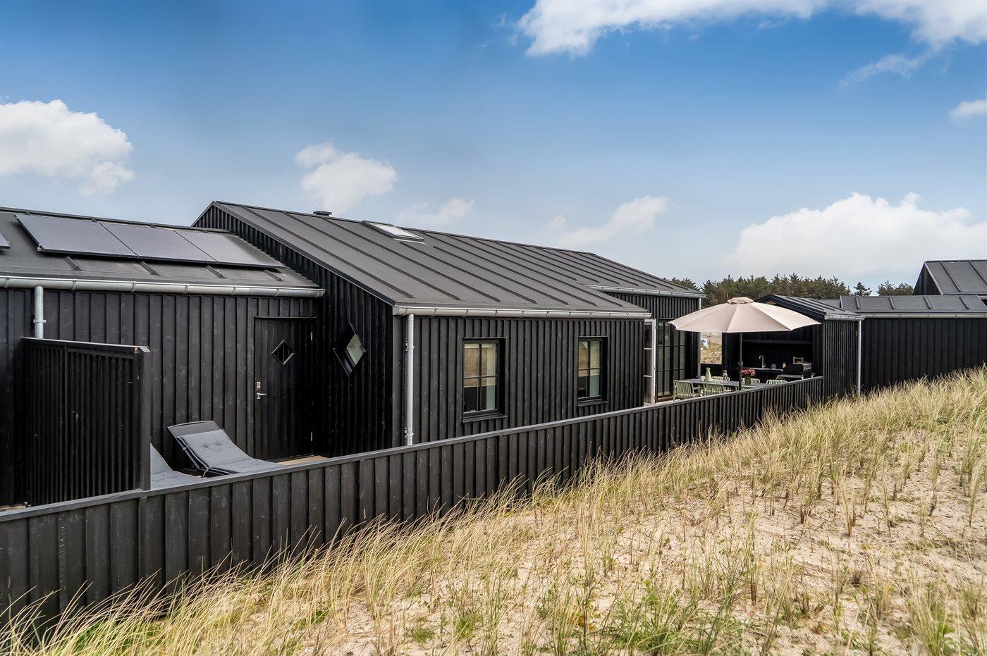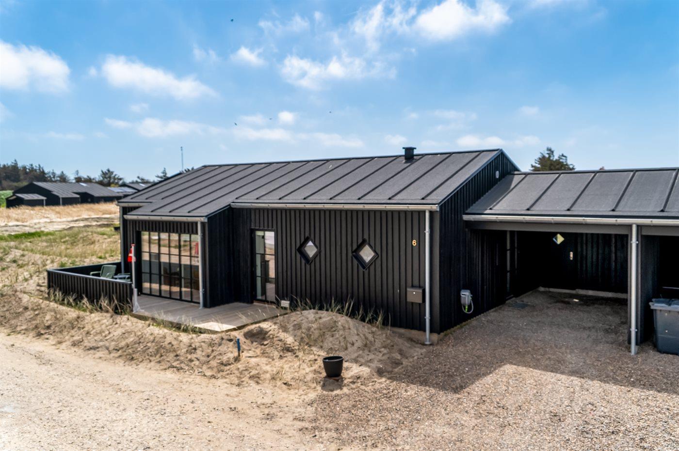Die Ferienunterkunft liegt auf einem 261 m² großen Dünengrundstück. Die Entfernung zum Meer beträgt 500 m. Die nächste Einkaufsmöglichkeit liegt 500 m entfernt. Es steht ein offenes Terrassenareal zur Verfügung. Geräteraum. Außendusche. Es beteht die Möglichkeit das Essen in der Außenküche zuzubereiten. Es steht ein Grill zur Verfügung. Es steht ein Carport zur Verfügung. Es ist ein Ladestecker für Elektroautos installiert. Ladestecker Typ 2. Mit einer Ladeleistung von 11 kW. Parkplatz auf dem Grundstück.
