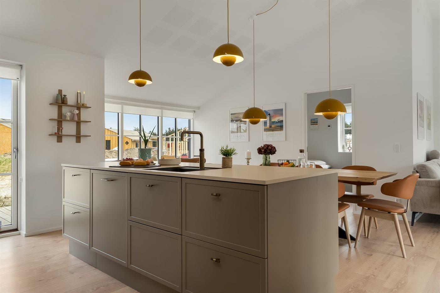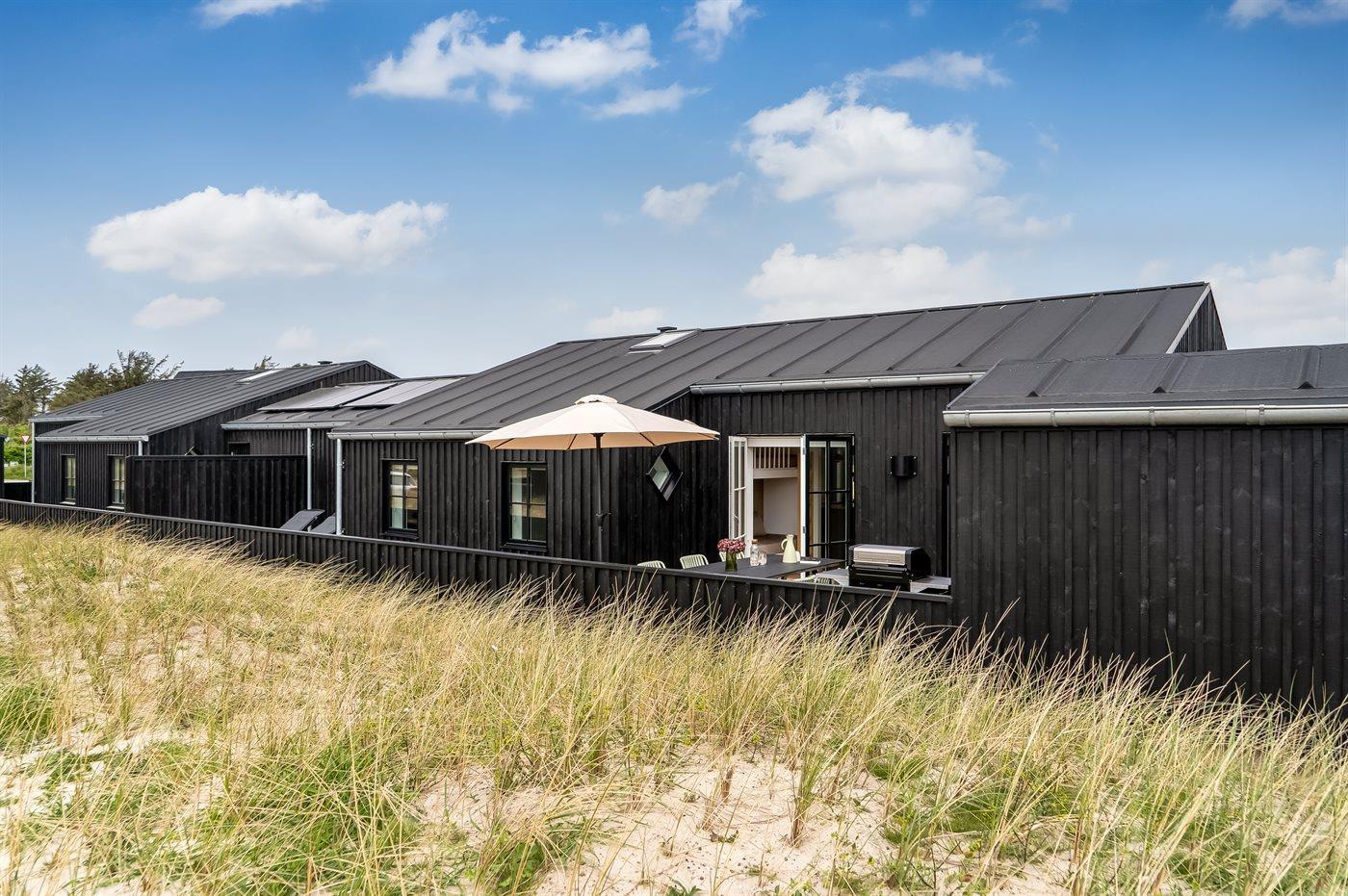 Modernes Ferienhaus in Løkken mit Terrasse, Außenküche und Ladestation für Elektroautos.