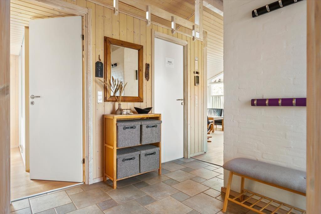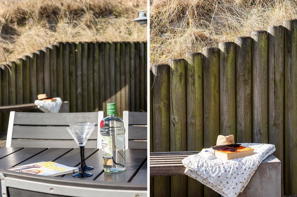 Sobald du in den Garten trittst, wird es schwer sein, sich nicht von der entspannenden Atmosphäre ergreifen zu lassen, die den Bereich umgibt. Das Ferienhaus liegt auf einem hügeligen Grundstück, wo die wunderschöne Natur dich in eine perfekte Urlaubsatmosphäre versetzt. Die nach Westen ausgerichtete Terrasse ist ideal, um den Nachmittag und Abend in der Sonne zu genießen, während du dich entspannst, ein Getränk genießt oder ein leckeres Abendessen grillst. Der Terrassenbereich ist eine wundervolle Oase, in der du viele Stunden mit der frischen Meeresluft und der schönen Natur rund um dich verbringen kannst. Die hügeligen Gelände und der Strandhafer rund um das Ferienhaus tragen zu einer besonderen Atmosphäre bei, die dir das Gefühl gibt, wirklich in der Nähe des Vesterhavens zu sein.