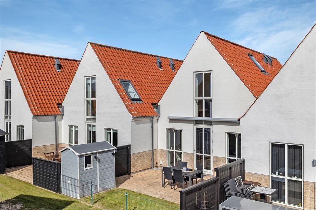 Das Ferienhaus ist Teil eines hübschen Reihenhauskomplexes aus dem Jahr 2007. Innen bietet das Haus viel Tageslicht, und die Akustikdecken sowie die helle Farbgestaltung tragen zu einer angenehmen Raumatmosphäre bei. Im Erdgeschoss findet ihr einen Wohnbereich, der euch schnell wie zu Hause fühlen lässt: Eine gemütliche Sofaecke, einen Esstisch für sechs Personen und eine offene Küche mit viel Platz zum Kochen. Außerdem gehören ein Eingangsbereich mit Waschmöglichkeiten, ein schönes Badezimmer und ein Schlafzimmer zum Grundriss. Das Obergeschoss verfügt über zwei weitere Schlafzimmer und ein zusätzliches Badezimmer. Insgesamt bietet das Haus eine großartige Raumaufteilung, die sich sowohl für Familienurlaube als auch für gemütliche Auszeiten mit guten Freunden eignet.