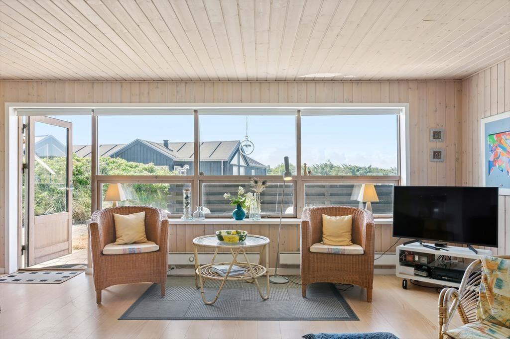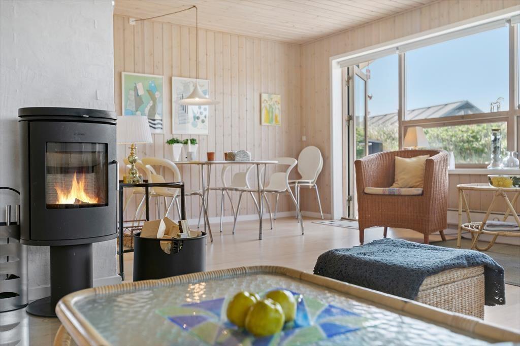 Mit einer solchen Lage ist es naheliegend, einen Großteil des Urlaubs am Strand oder in der Innenstadt von Løkken zu verbringen, die ebenfalls nur einen kurzen Spaziergang entfernt ist. Aber es ist auch schön, einfach zu Hause im Ferienhaus zu entspannen, das von Gemütlichkeit und Charme erfüllt ist. Sogar drinnen könnt ihr die idyllische Lage genießen, denn vom Wohnzimmer aus könnt ihr auf die mit Strandhafer bewachsenen Dünen und den blauen Himmel blicken, während ihr euch auf der Couch nahe dem Kaminofen ausruht oder ein Brettspiel am Esstisch spielt. Die Küche ist mit dem Wohnzimmer integriert, sodass es einfach ist, schnell für eine Nachfüllung der Kaffeetasse zu sorgen oder das Abendessen auf dem Herd zu kochen. Ein Badezimmer mit Dusche und zwei Schlafzimmer gehören zur Raumaufteilung, und es gibt sogar zusätzliche Betten im Annex, falls Teile der Gruppe dort übernachten möchten.