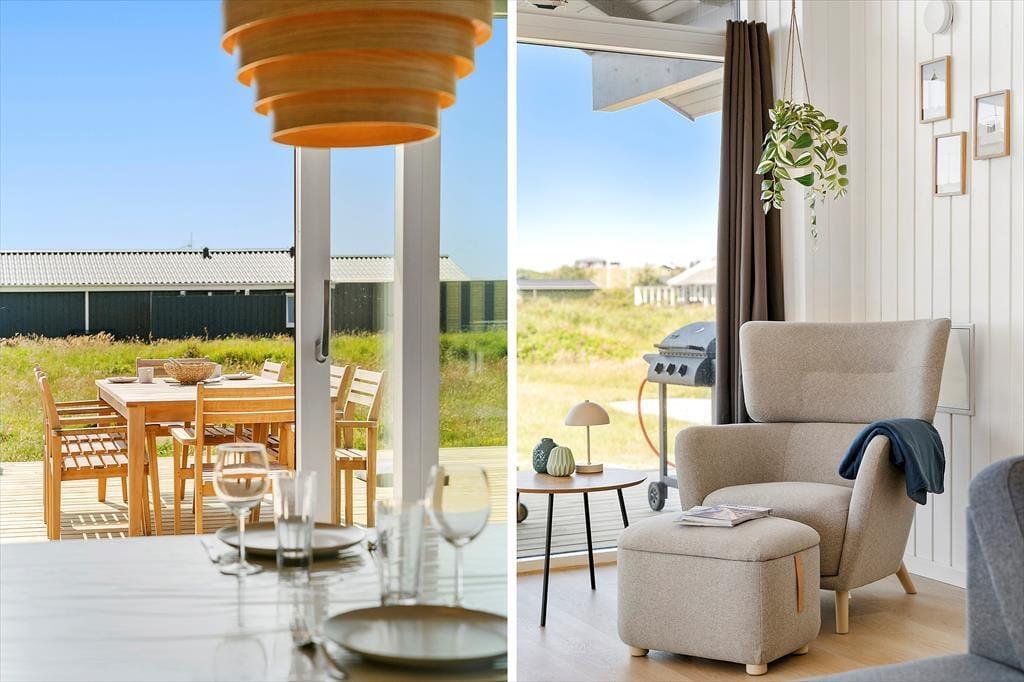 Das 105 m² große Ferienhaus bietet eine hervorragende Raumaufteilung und Platz für bis zu sechs Erwachsene und zwei Kinder. Am einen Ende des Hauses befindet sich der Schlafbereich mit drei komfortablen Schlafzimmern und zwei Badezimmern. Im Haus gibt es nicht nur eine, sondern zwei Schlafgalerien, die nicht nur als Schlafplatz genutzt werden können, sondern tagsüber auch ein Hit für Kinder sind, die in Ruhe spielen oder lesen möchten. Wenn ihr euch alle zusammenfinden möchtet, ist das Wohnzimmer ein wunderbarer Aufenthaltsraum. Große Fenster lassen viel Tageslicht herein, die Einrichtung sorgt für angenehmen Komfort, und die offene Verbindung zur Küche ermöglicht es euch, miteinander zu plaudern, während Salat gewaschen oder in den Töpfen gerührt wird. Wie man es von einem Neubau aus dem Jahr 2024 erwarten kann, ist die Ausstattung erstklassig: von Flachbildfernseher und schnellem Internet bis hin zu einer Wärmepumpe mit Kühlfunktion.