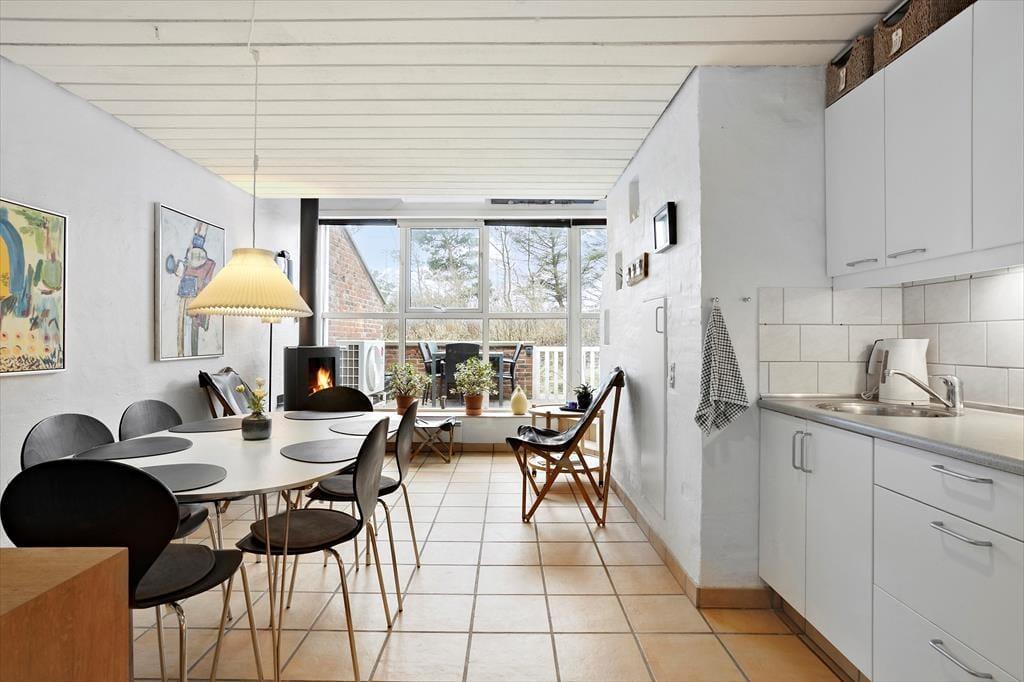 Wenn du dieses helle und einladende Ferienhaus betrittst, wirst du von einem offenen und geräumigen Wohnbereich empfangen, der sowohl zum Entspannen als auch zum gemeinsamen Beisammensein einlädt. Die Küche ist offen und modern, und hier kannst du Mahlzeiten zubereiten, während du gleichzeitig an Gesprächen im Wohnzimmer teilnimmst. Die großen Fenster bieten einen fantastischen Lichteinfall und schaffen eine angenehme, helle Atmosphäre den ganzen Tag über. Im Wohnzimmer kannst du vor dem Kaminofen entspannen, der die perfekte Stimmung für einen gemütlichen Abend schafft. Das Ferienhaus bietet drei schöne Schlafzimmer, die zum Ausruhen und Entspannen einladen, und mit einem Badezimmer sowie einem zusätzlichen WC ist ausreichend Platz für die ganze Familie.