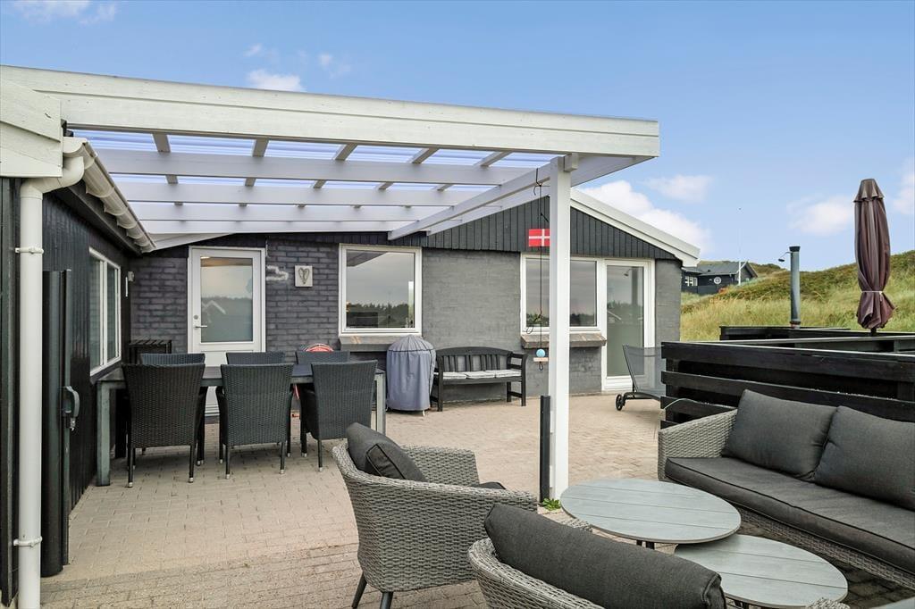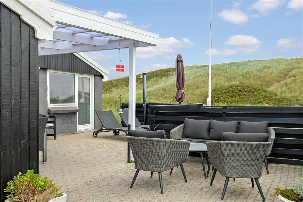 Das hügelige Gelände rund um das Haus sorgt für eine besondere Stimmung von Ruhe und Frieden, und es ist leicht, seinen eigenen Lieblingsplatz in der Sonne zu finden. Auf der schönen Terrasse kannst du den Tag mit einer Tasse Kaffee beginnen, während du dem Vogelgezwitscher lauschst und die frische Meeresluft spürst. Die Terrasse eignet sich perfekt für entspannte Stunden mit einem Buch auf der Sonnenliege oder für gemütliche Mahlzeiten unter freiem Himmel, wenn der Grill angezündet wird und sich der Duft des Sommers verbreitet.