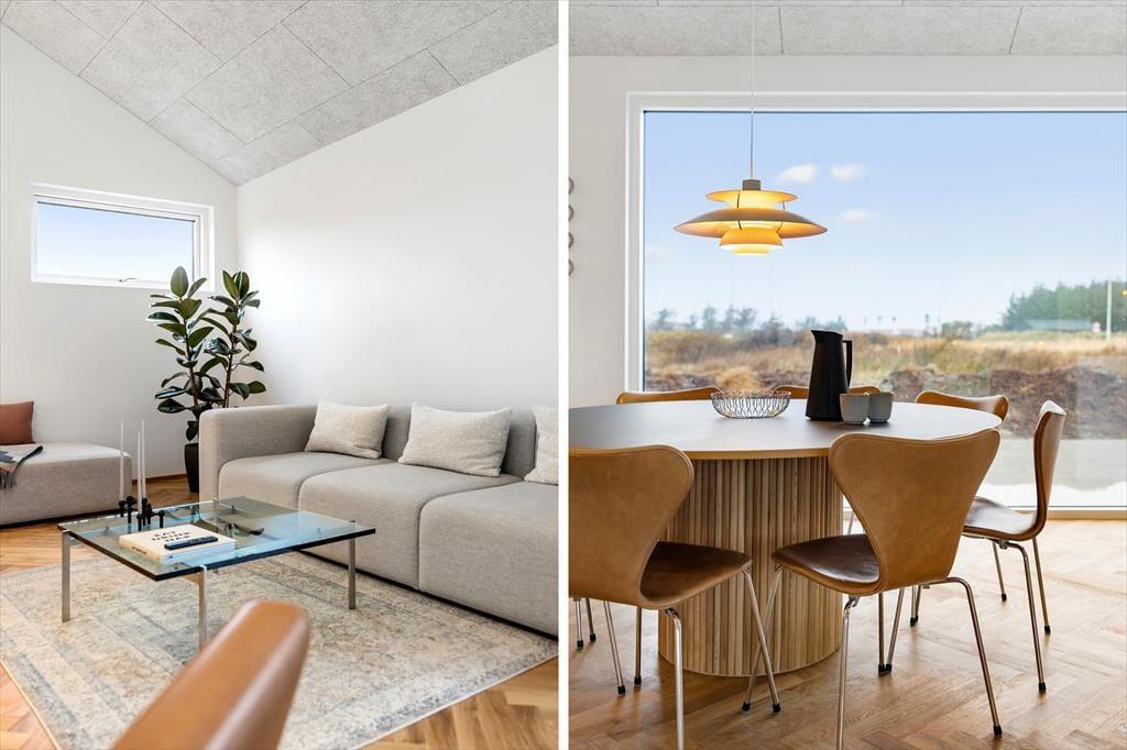 Das Ferienhaus empfängt dich mit einer Einrichtung, die Qualität und durchdachtes Design ausstrahlt. Helle Materialien, edle Böden und eine offene Raumgestaltung bis unter das Dach schaffen eine großzügige und elegante Atmosphäre, in der du dich sofort wohlfühlst. Das Herz des Hauses ist der großzügige Wohn- und Küchenbereich, in dem die moderne Küche offen mit dem Wohnzimmer verbunden ist. Hier kannst du ein köstliches Mahl mit regionalen Zutaten zubereiten, während du dich an den Gesprächen am Esstisch beteiligst oder einfach das Lichtspiel durch die großen Fensterfronten genießt. Die vier Schlafzimmer sind auf Ruhe und Komfort ausgelegt, und die zwei stilvollen Badezimmer sorgen für zusätzlichen Ferienkomfort. Alles im Haus wirkt neu, hell und einladend – der perfekte Rahmen für gemütliche Tage mit Familie und Freunden.