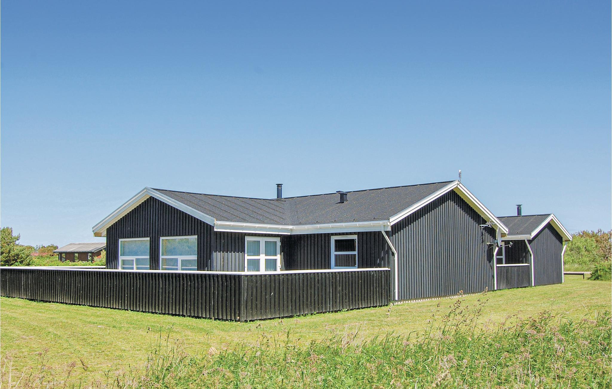 Auf einem großen, offenen Naturgrund und das Meer, den breiten Sandstrand und den Ort Løkken in fußläufiger Entfernung liegt dieses Ferienhaus. Im Haus gibt es zwei Badezimmer, eines mit Whirlpool, das andere mit Sauna. Auf den beiden gegenüberliegenden Seite des Hauses liegen