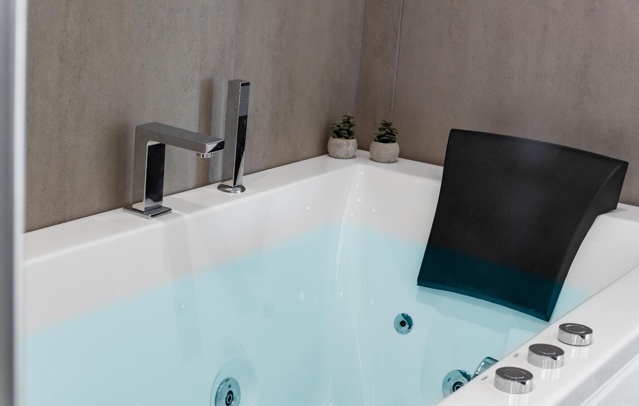 Ein besonderes Wellness-Erlebnis erwartet Sie auf der Terrasse, die mit einem Whirlpool ausgestattet ist, wo Sie ausgiebig relaxen können. Auch im Badezimmer finden Sie einen Whirlpool für Ihre Erholung. Darüber hinaus bietet die großzügige Terrasse viel Platz zum Entspannen und zum Genießen der schönen Aussicht.