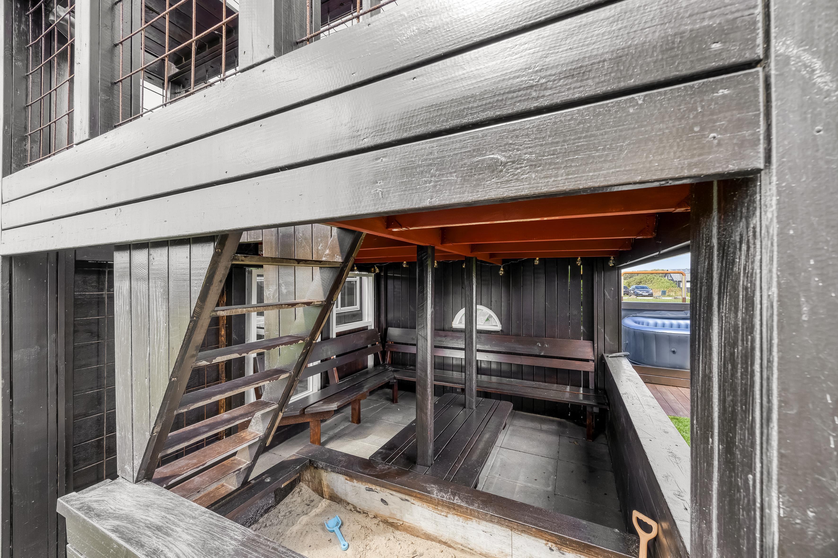 Das Ferienhaus liegt auf einem großen Grundstück mit viel Platz für Spiel und Entspannung. Im Garten gibt es einen privaten kleinen Fußballplatz, auf dem sich Kinder und Erwachsene vergnügen können. Nach dem Spiel kannst du im Außen-Spa relaxen oder die Aussicht auf die schöne Natur und Dünenlandschaft rund um Nr. Lyngby genießen.