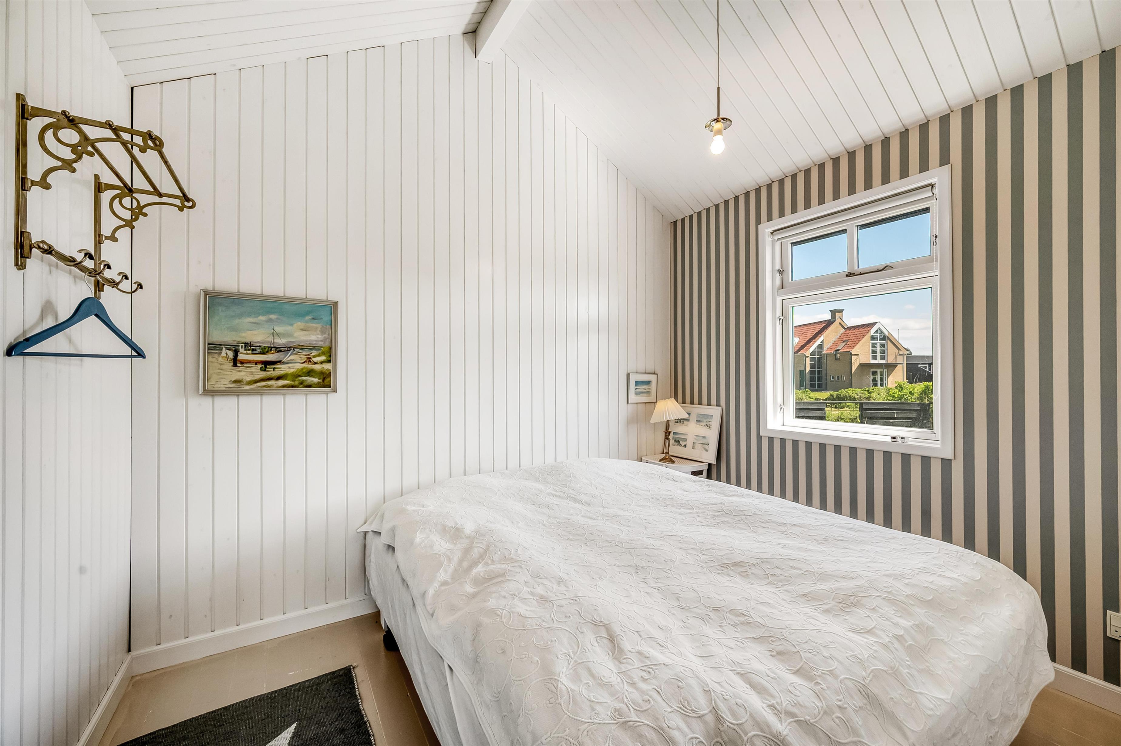 Die beiden Schlafzimmer und das Badezimmer befinden sich direkt angrenzend an den Essbereich. Alle Räume sind freundlich und stilvoll eingerichtet – mit einer hellen, einladenden Atmosphäre, die an ein dänisches Badehotel erinnert.