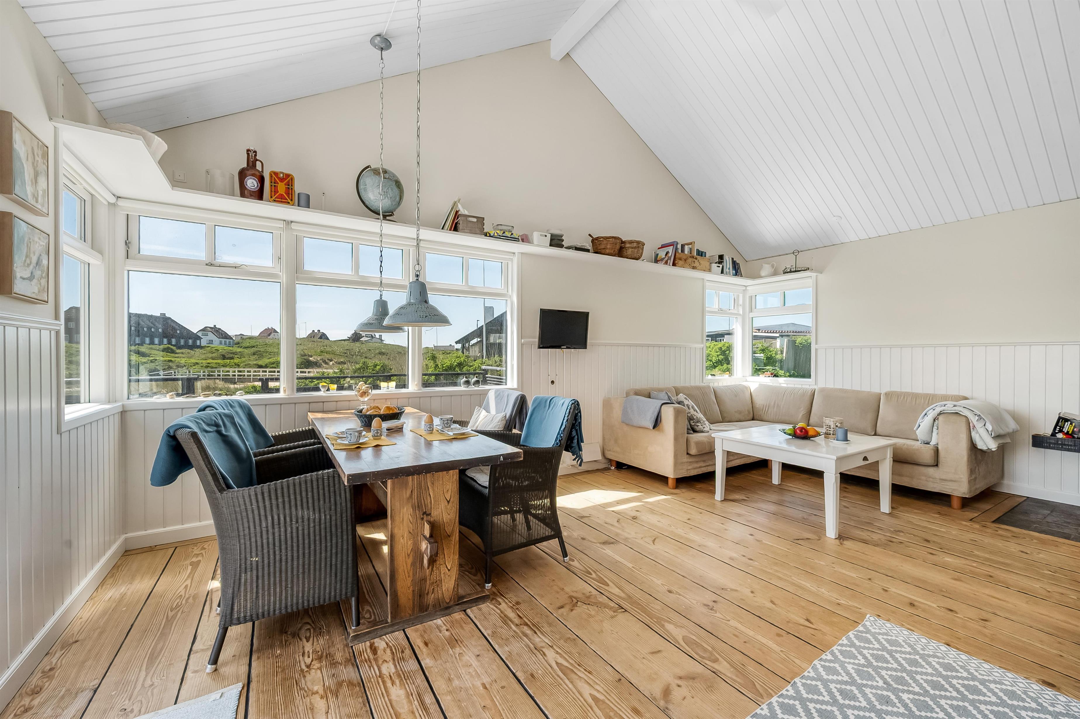 Im Inneren betrittst du direkt die charmante Küche, von der aus du in das große, helle Wohn- und Esszimmer mit herrlicher Aussicht über Furreby gelangst.