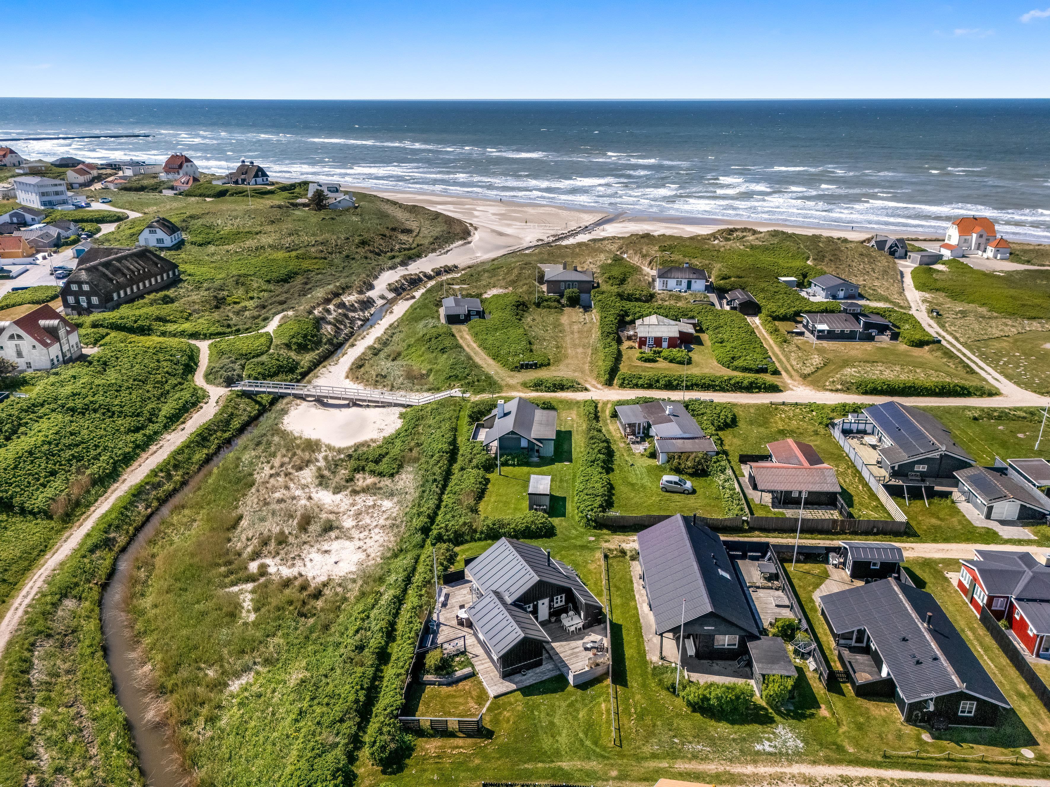 Draußen fließt der Furreby Bæk vorbei, und du befindest dich in einer ruhigen Umgebung. Wenn du Lust auf etwas mehr Leben oder Shopping hast, gehst du einfach über die Brücke – und schon bist du mitten in Løkken. Auch der Weg zur Nordsee ist nicht weit – es gibt viele schöne Pfade dorthin.