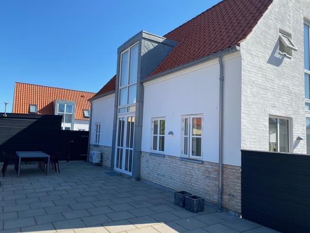 Helles und geräumiges Ferienhaus in Løkken mit Terrasse, Gartenmöbeln und Nähe zu Strand und Stadtleben.