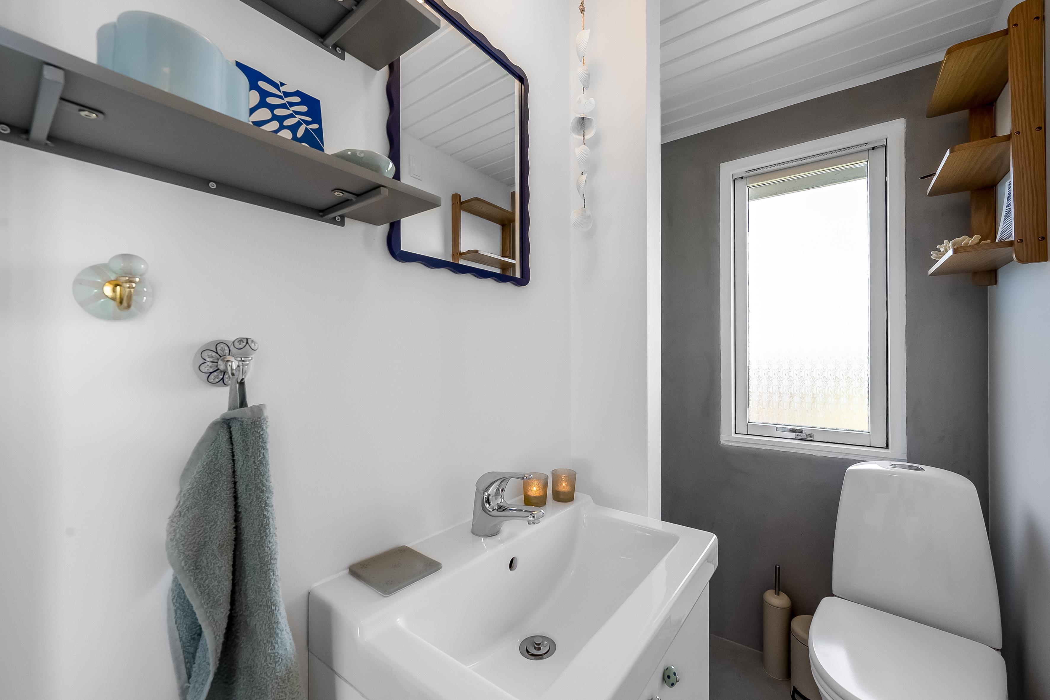 Das Haus bietet 40 m² Wohnfläche im Haupthaus mit zwei Schlafzimmern, Badezimmer, Küche/Wohnbereich und TV-Stube. Der Wohnbereich ist schön hell, mit Holzofen, und von hier aus gelangt man auf beide Terrassen. Küche und Bad im Haupthaus wurden kürzlich renoviert. Darüber hinaus gibt es eine 33 m² große Garage mit zusätzlichem Schlafzimmer und Badezimmer.
