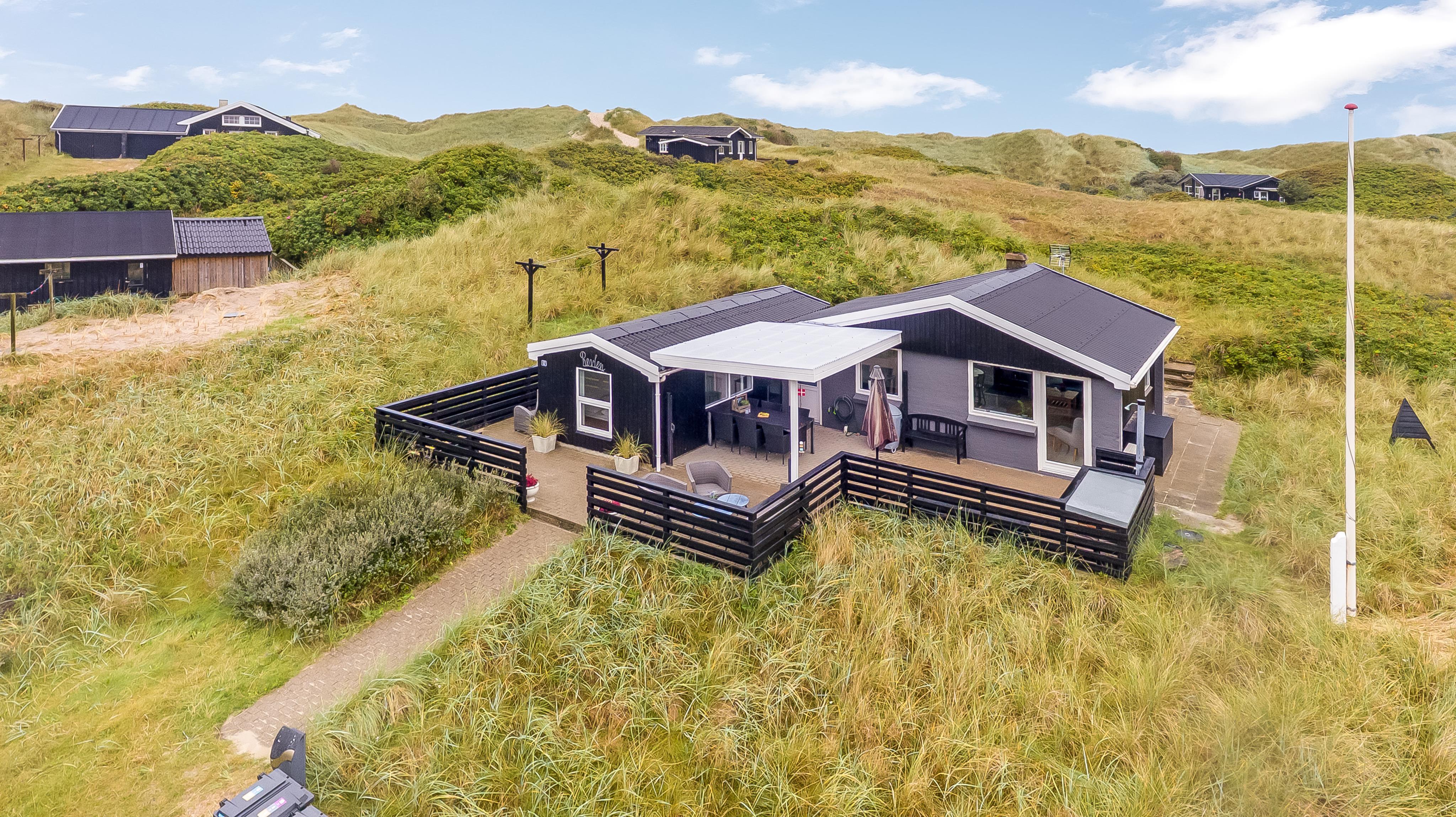 Vom Wohnzimmer aus genießt du einen schönen Ausblick auf die umliegende Natur und andere Ferienhäuser. Mit nur wenigen Metern zum Strand und etwa 2 km bis zum Zentrum von Løkken hast du sowohl Ruhe als auch Stadtnähe in Reichweite.