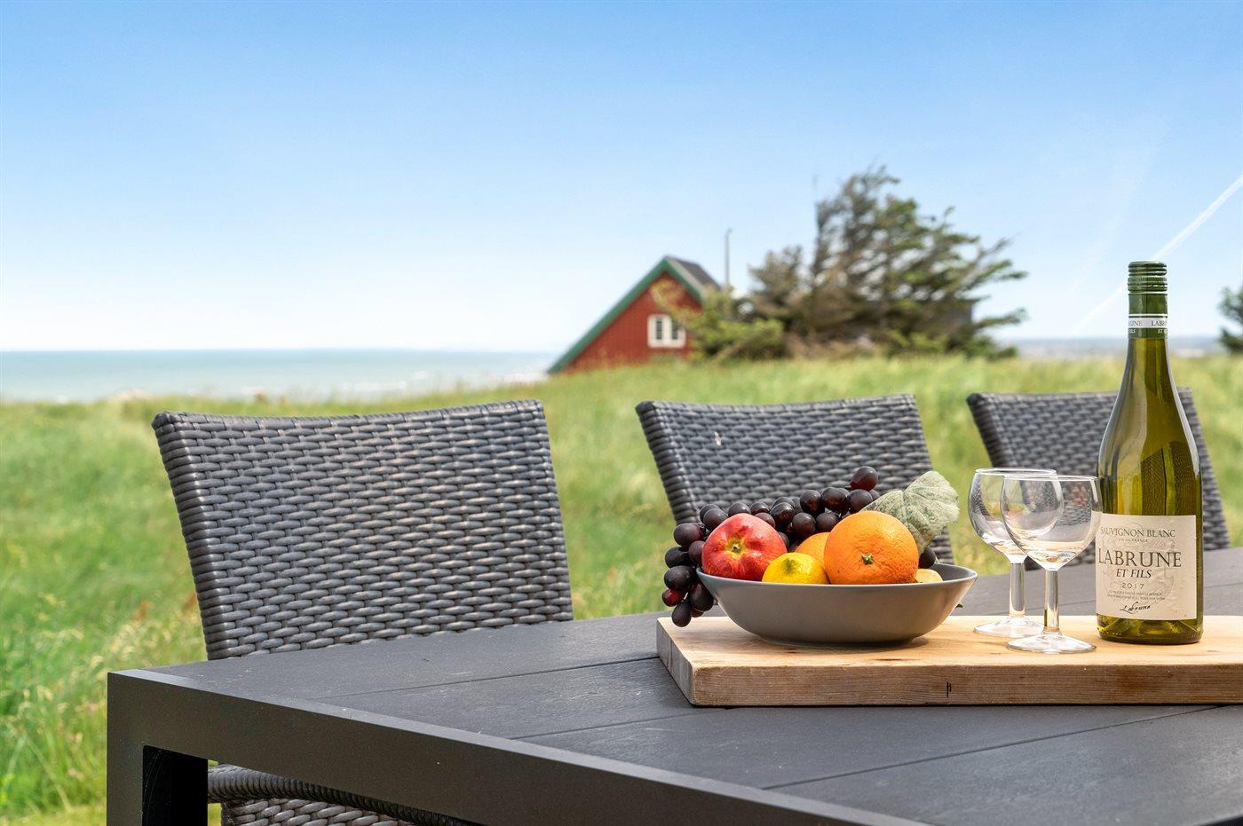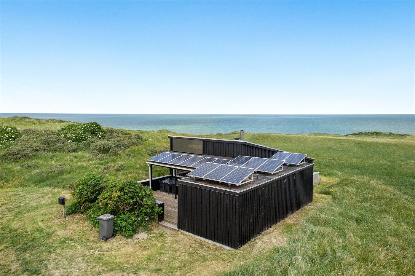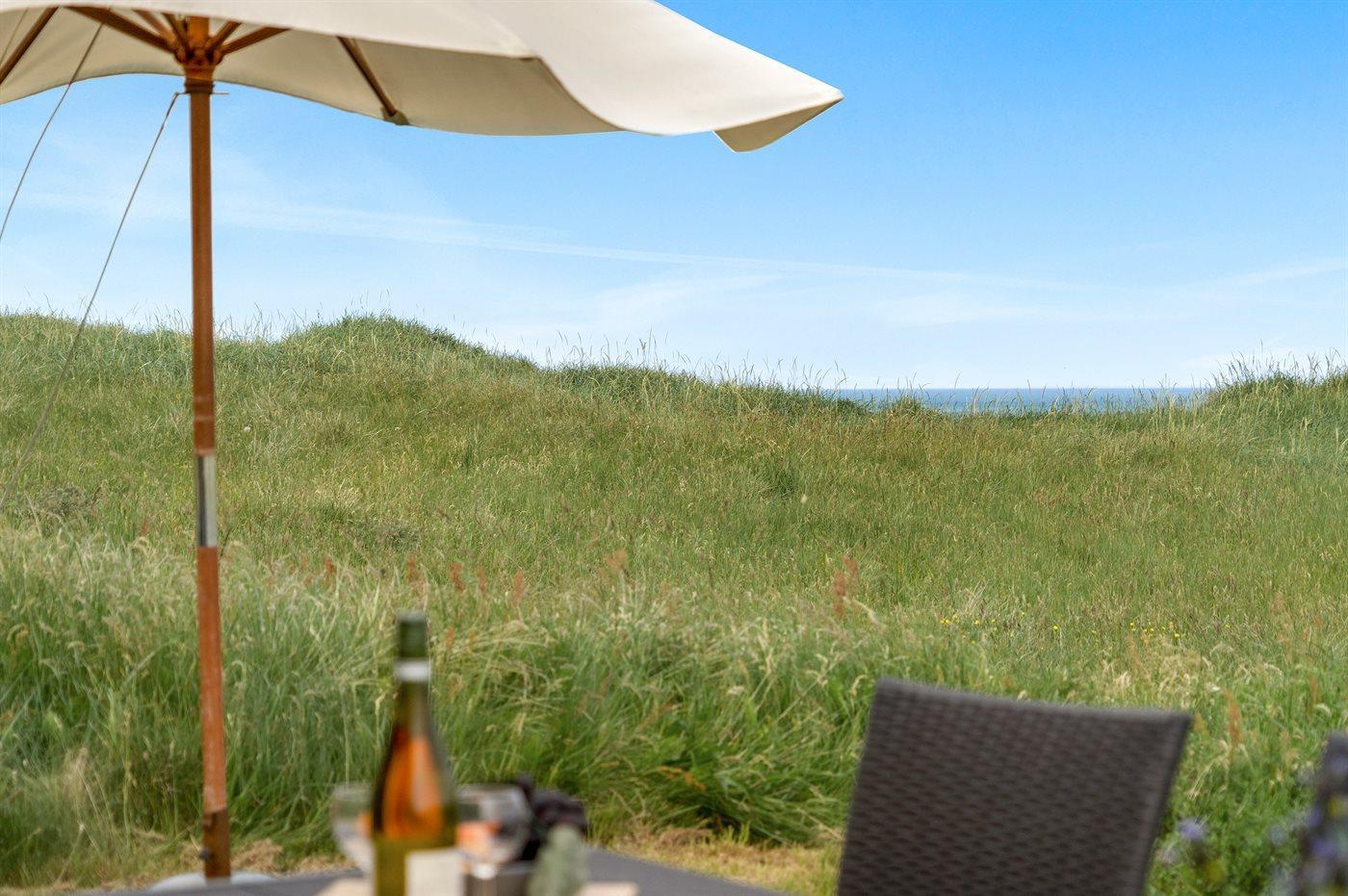 Ferienhaus in Lønstrup mit Panoramameeresblick, Whirlpool, Sauna und großer Terrasse auf Dünengrundstück.