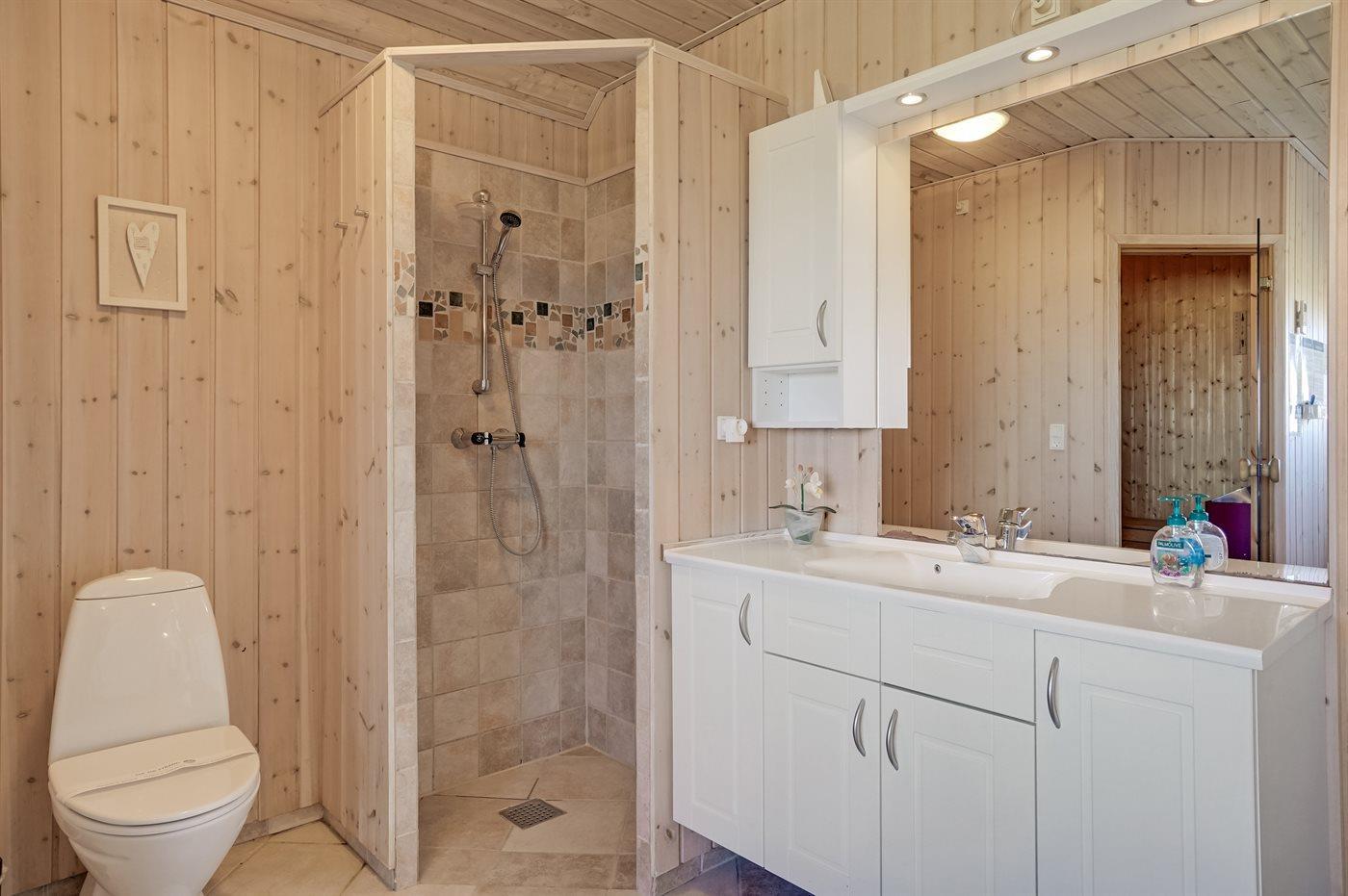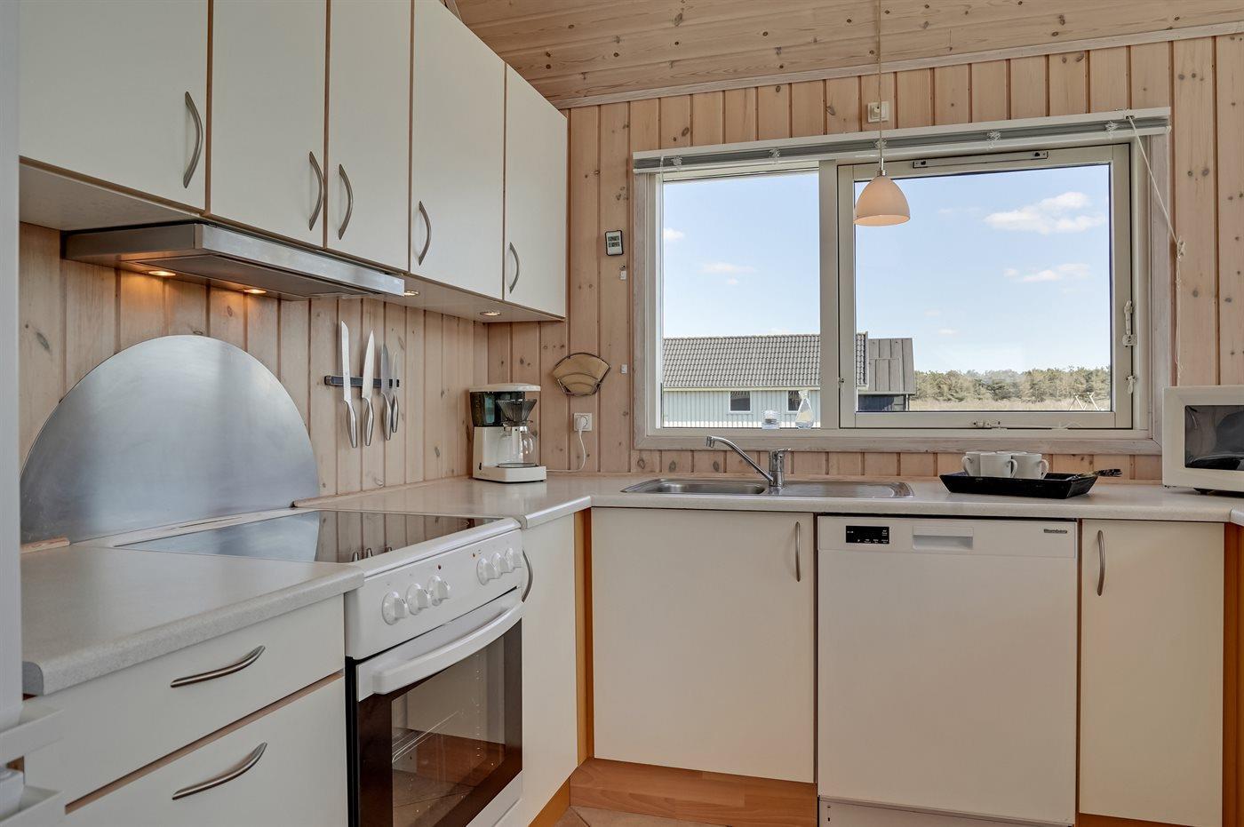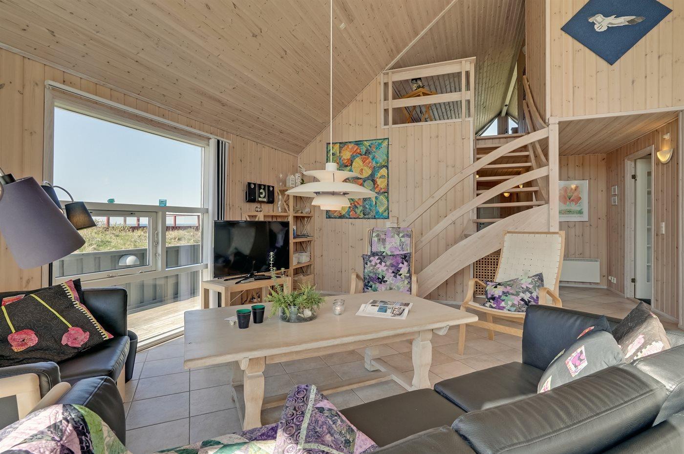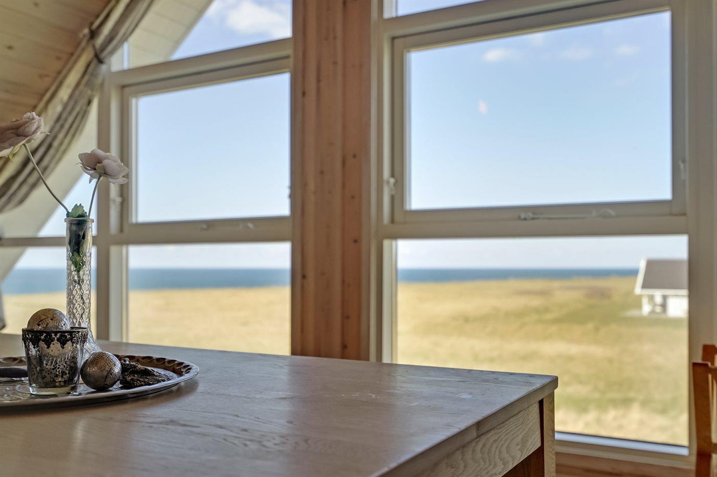 Prachtvolles 2-stöckiges Ferienhaus aus Holz, 2004 gebaut, auf einem Dünengrundstück nur 150 m vom Meer entfernt und dicht am Ferienort Lønstrup gelegen. Vom sowohl Haus als Grundstück gibt es eine wunderschöne Aussicht über das Meer. Beheizte Klinkerböden im Erdgeschoss, Holzböden in den Zimmern und im Obergeschoss. Hell gebeizte Wände und Decken. 2 Badezimmer mit Fußbodenheizung und Duschnische; eins davon mit 2-Pers.-Whirlpool und Sauna. Schöne, gut ausgestattete Küche mit u. a. Geschirrspüler, Mikrowelle, Tiefkühlgerät, Umluftofen und Herd mit Ceran-Feld. Nett möbliertes Wohnzimmer mit Kaminofen, TV mit Gemeinschaftantenne, Video und DVD-Spieler sowie Stereoanlage mit CD-Spieler. Zusätzliches TV im Obergeschoss. 4 gute Zimmer; 2 mit Doppelbett und 2 mit 2 Einzelbetten. Ferner kostenlose, kabellose Internetverbindung (Computer ist mitzubringen),Waschmaschine und Wäschetrockner vorh. Kinderbett, Kinderhochstuhl und Schaukel. Carport.